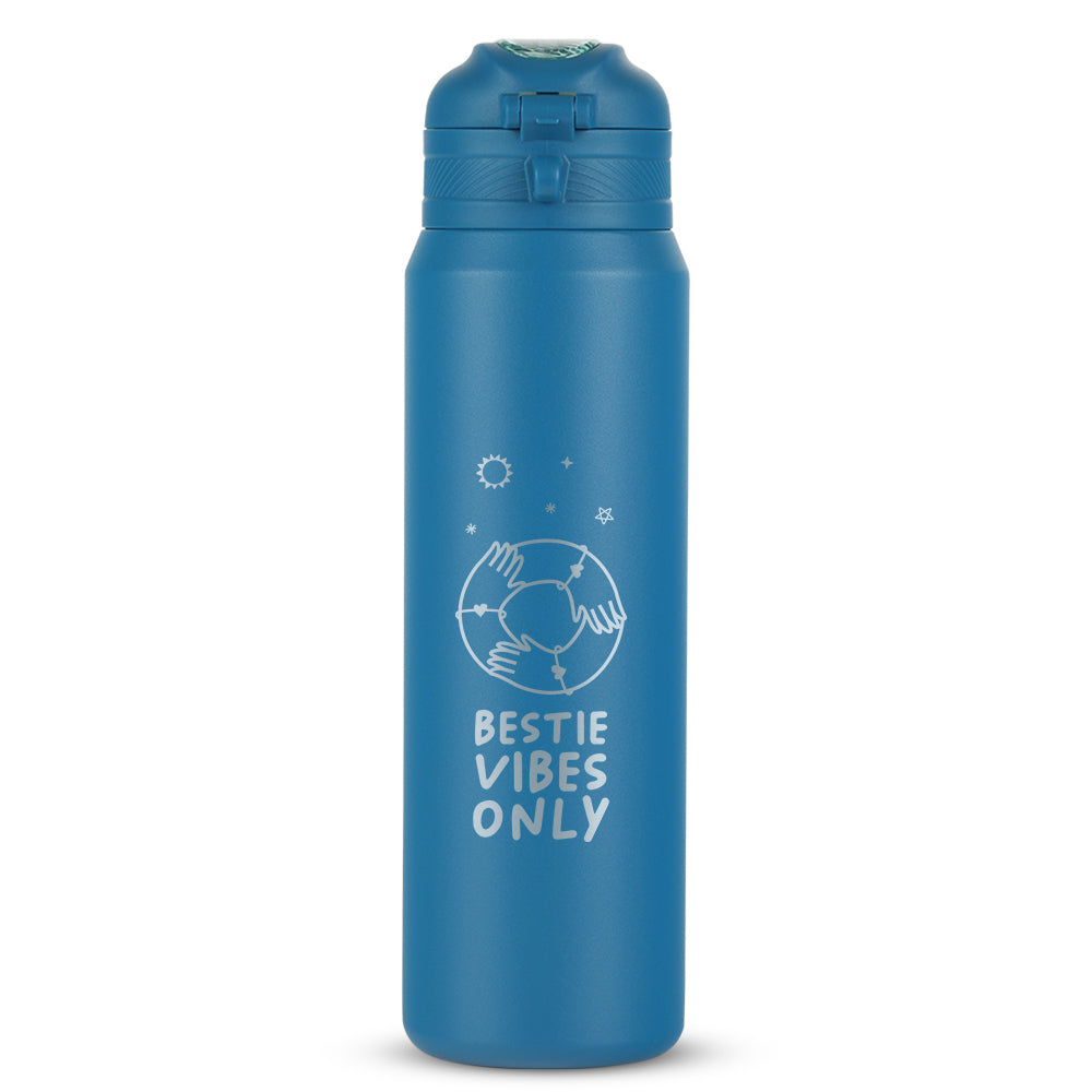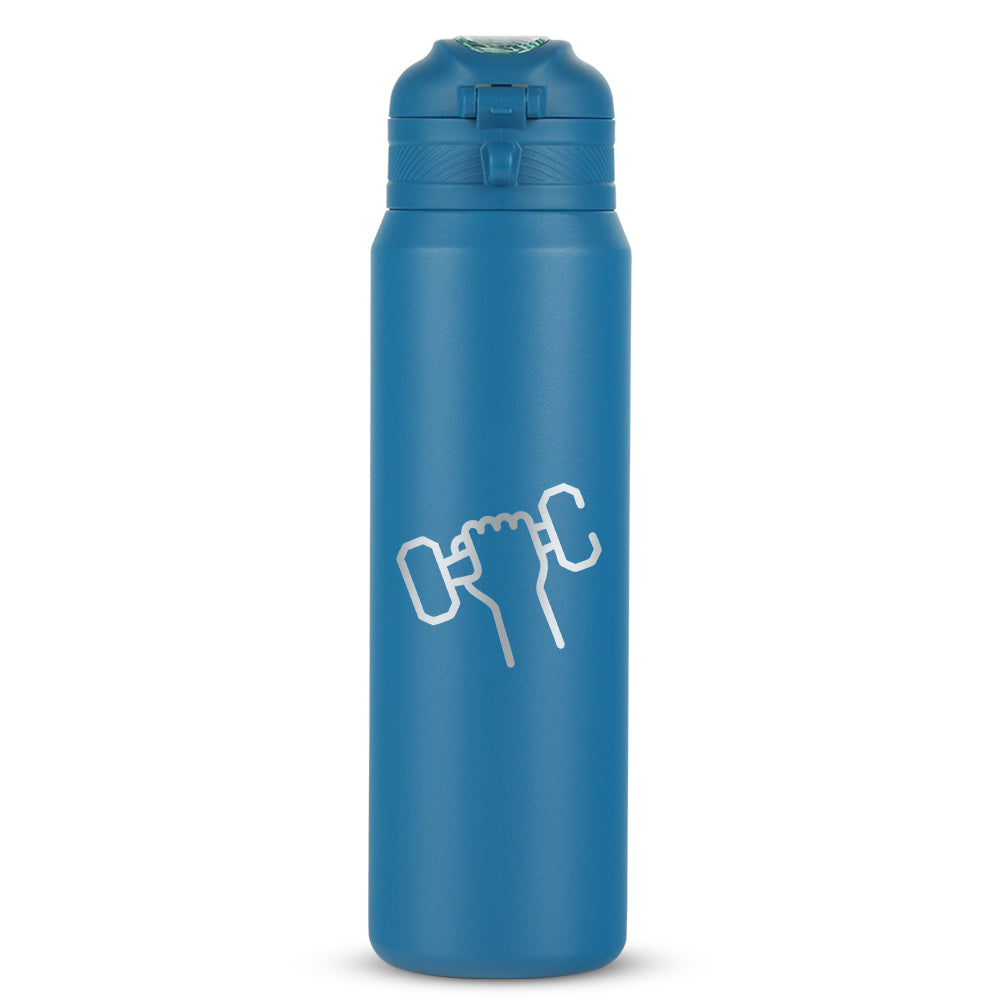 Meet the Aquasport Insulated Bottle in Blue – your ticket to long-lasting refreshment. Crafted from high-quality Grade 304 stainless steel, it's built to endure. With double-walled vacuum insulation and a copper coating, this 800 ml bottle keeps your drinks hot or cold for up to 10 hours. The game-changer? Its ingenious push & slide button – slide up to lock, slide down to unlock, and enjoy your favorite beverages at the perfect temperature. Whether it's a hike, a long workday, or a journey, the Aquasport Blue bottle keeps you quenched and looking sharp.