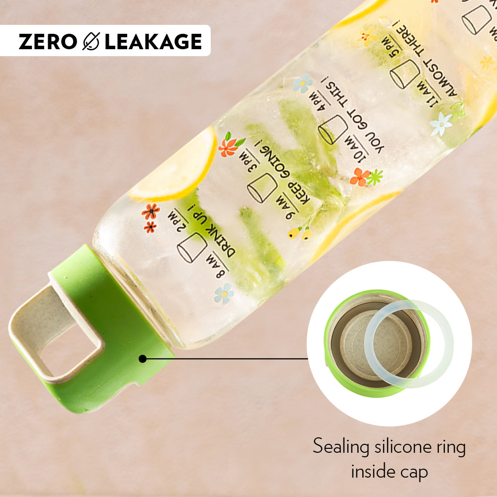 Borosil AM-PM Glass Bottle w Husk Lid, Green