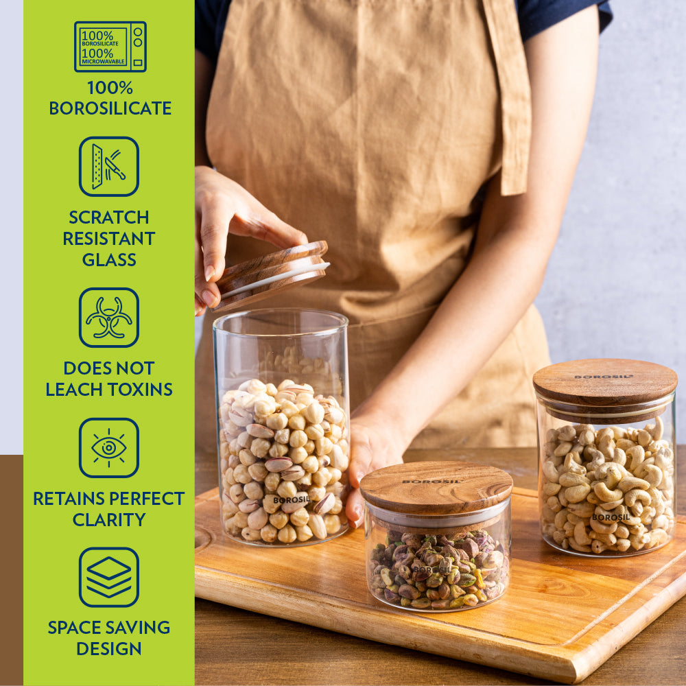 With wooden lidThe set comes with a wooden lid made of acacia wood with silicone gasket to ensure airtightness -