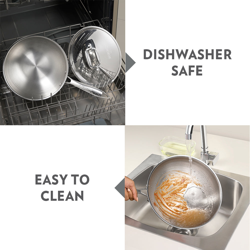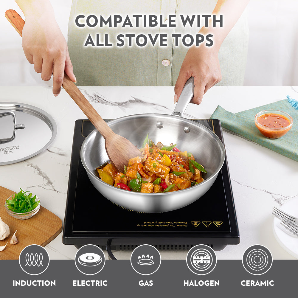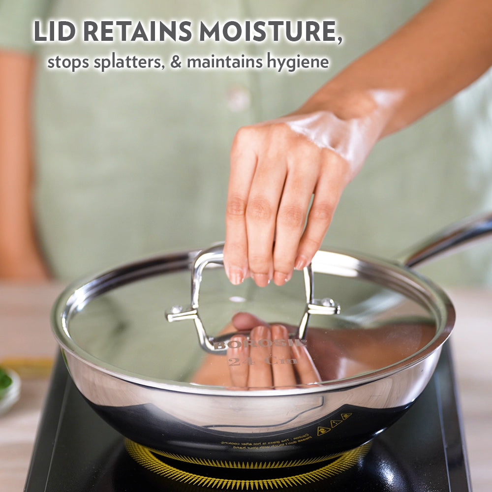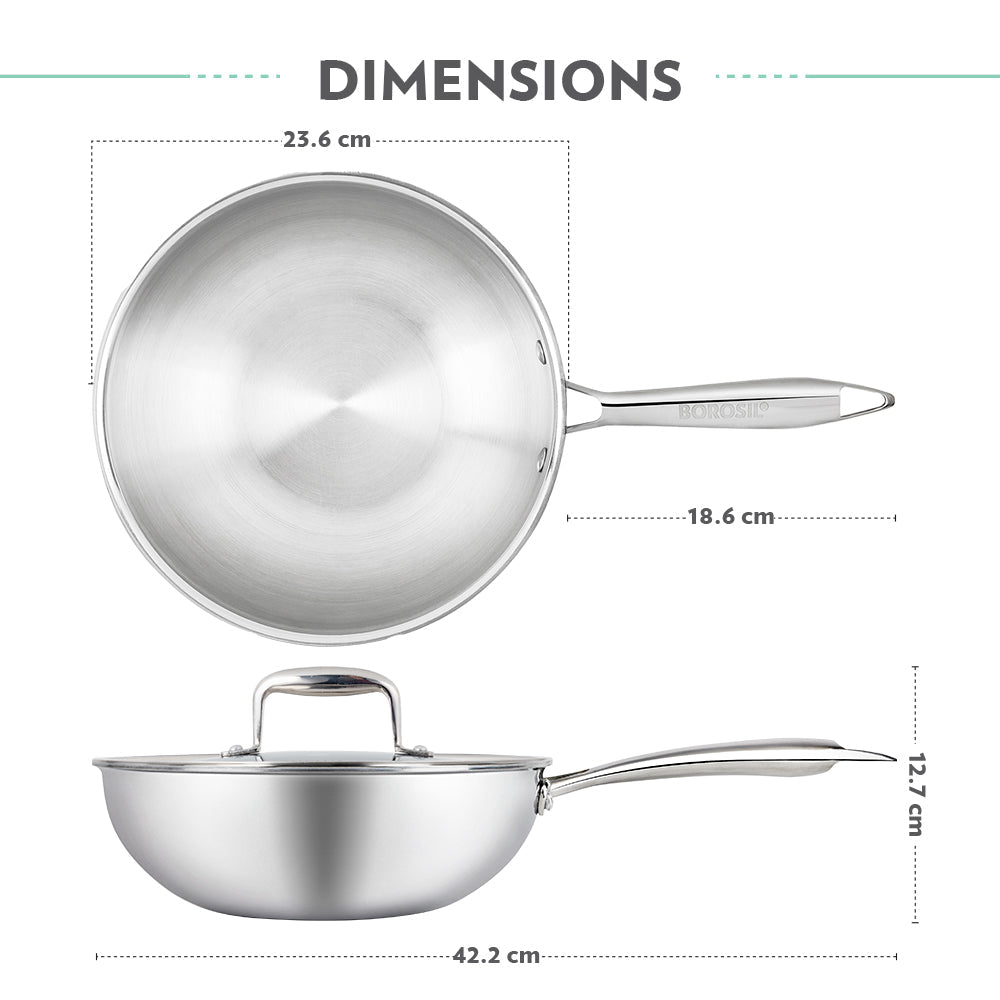 Borosil Cookfresh SS Tri-ply Wok with Lid, 2.25L/22cm