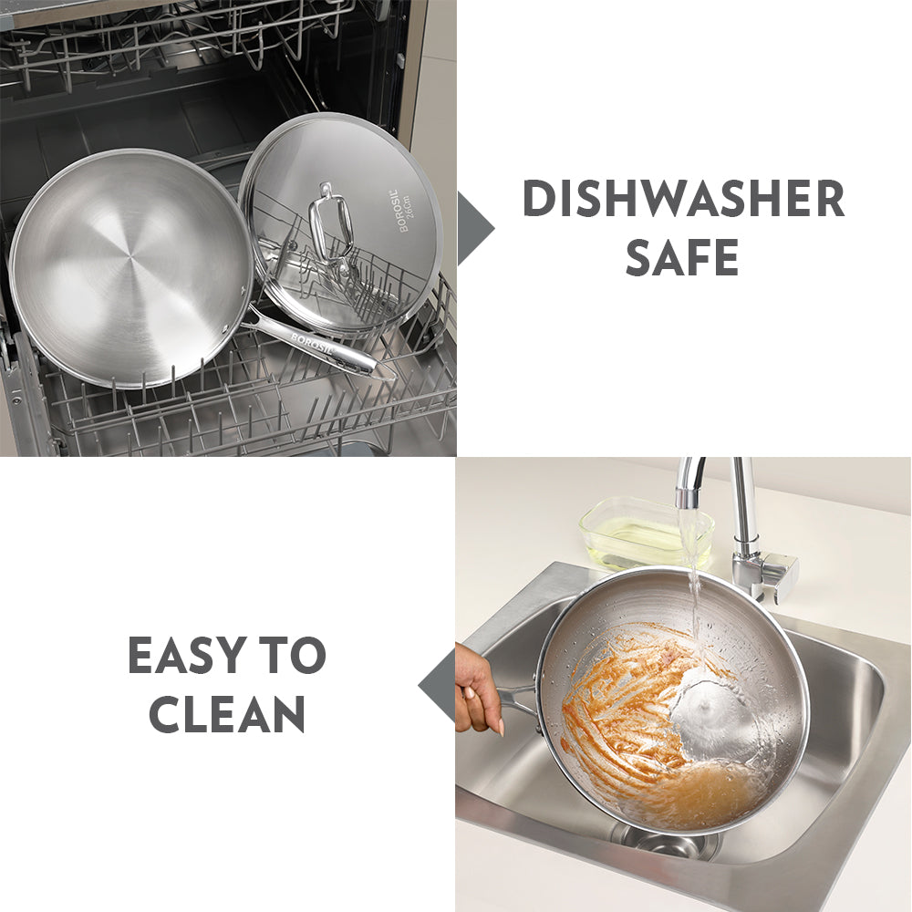 Borosil Cookfresh SS Tri-ply Wok with Lid, 3.5L/26cm