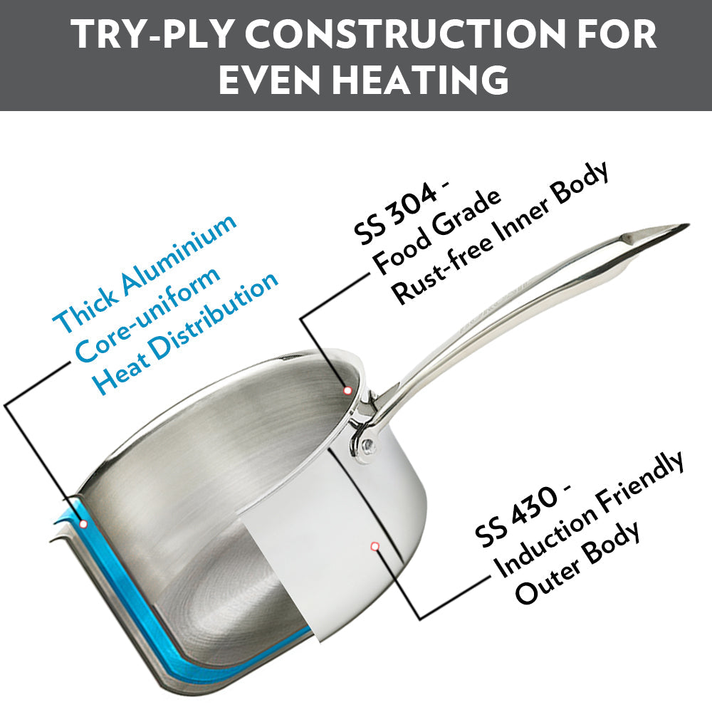- Energy efficient triply body for even heat distribution and uniform cooking