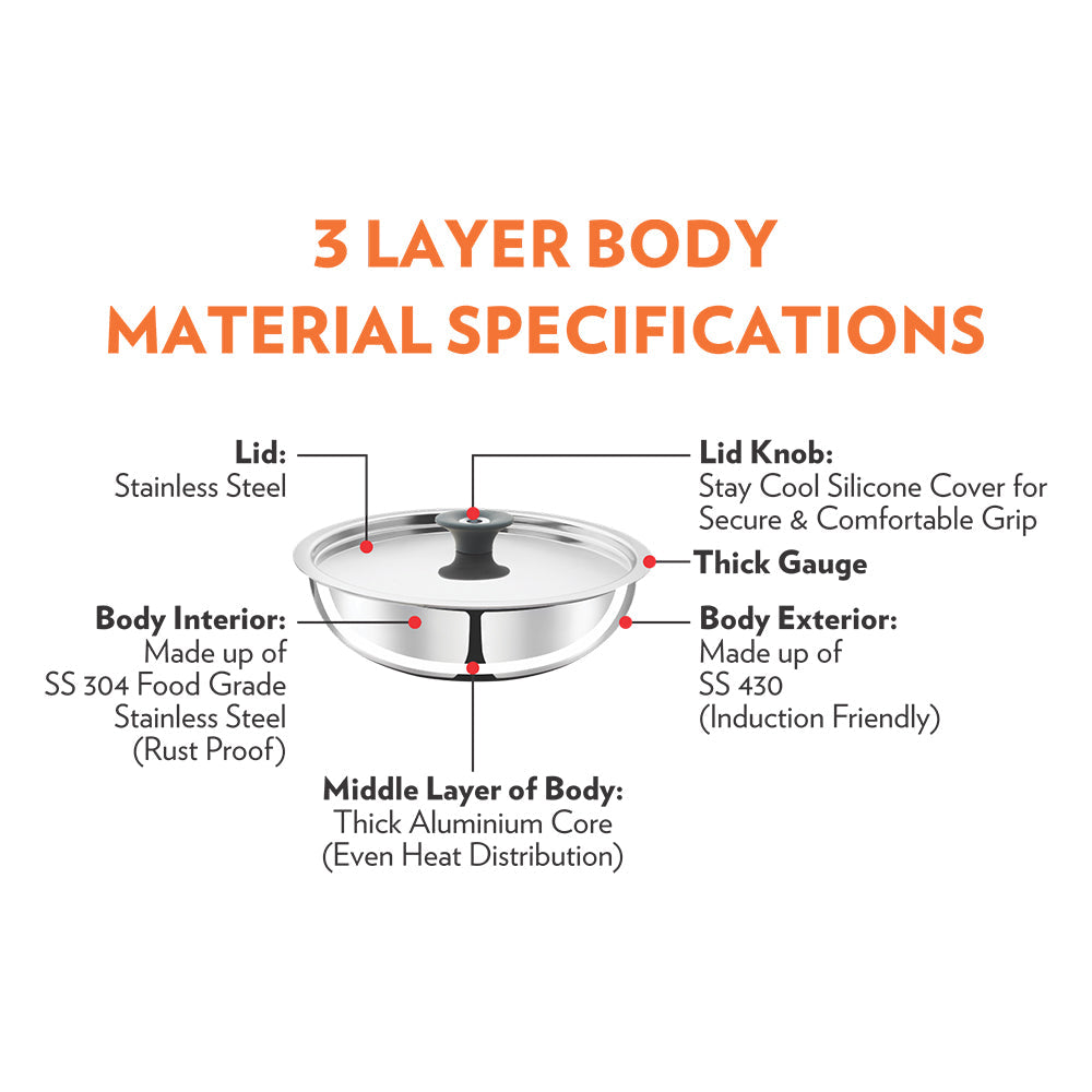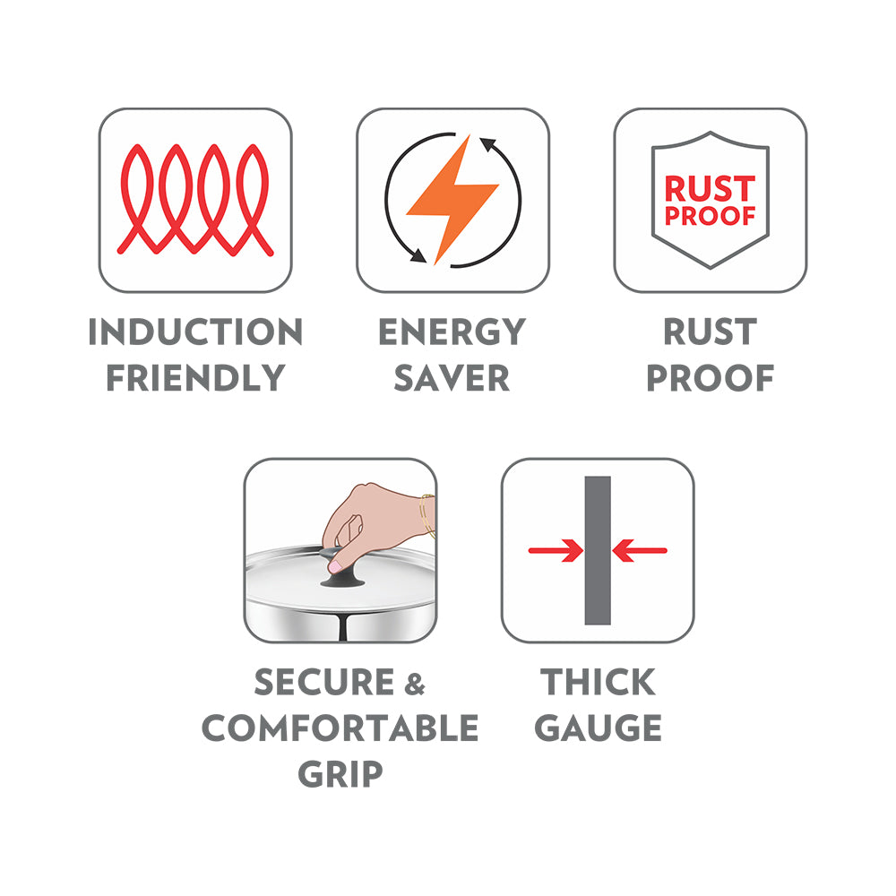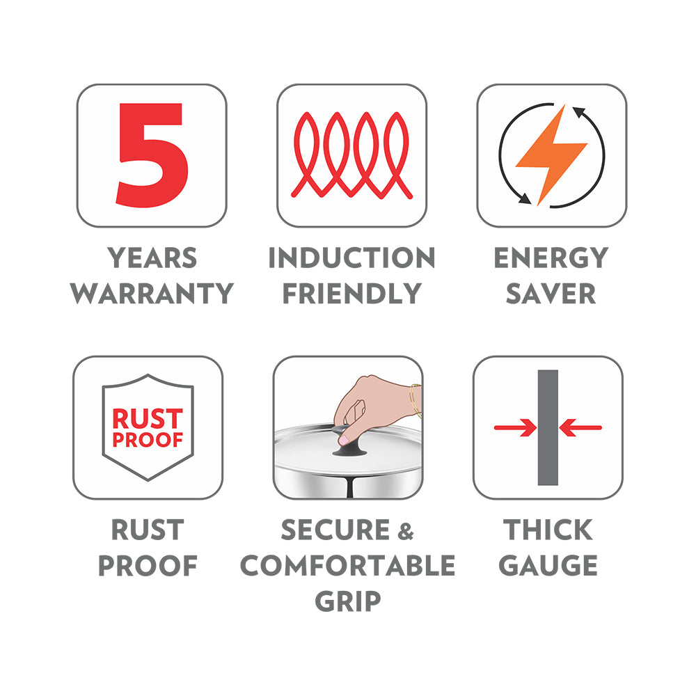 - Energy Efficient tri-ply body for even heat distribution and uniform cooking