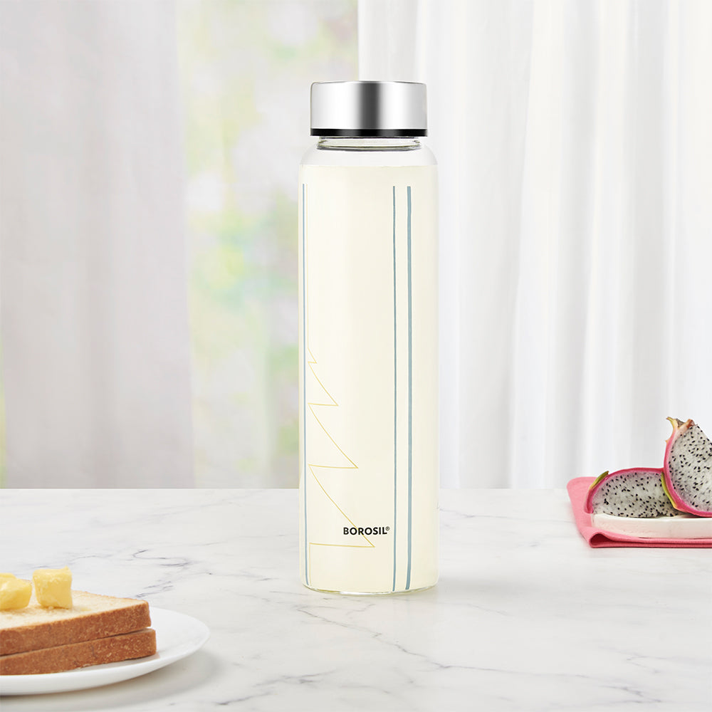 Borosil Crysto Wide Sintra Glass Bottle with Silver Lid