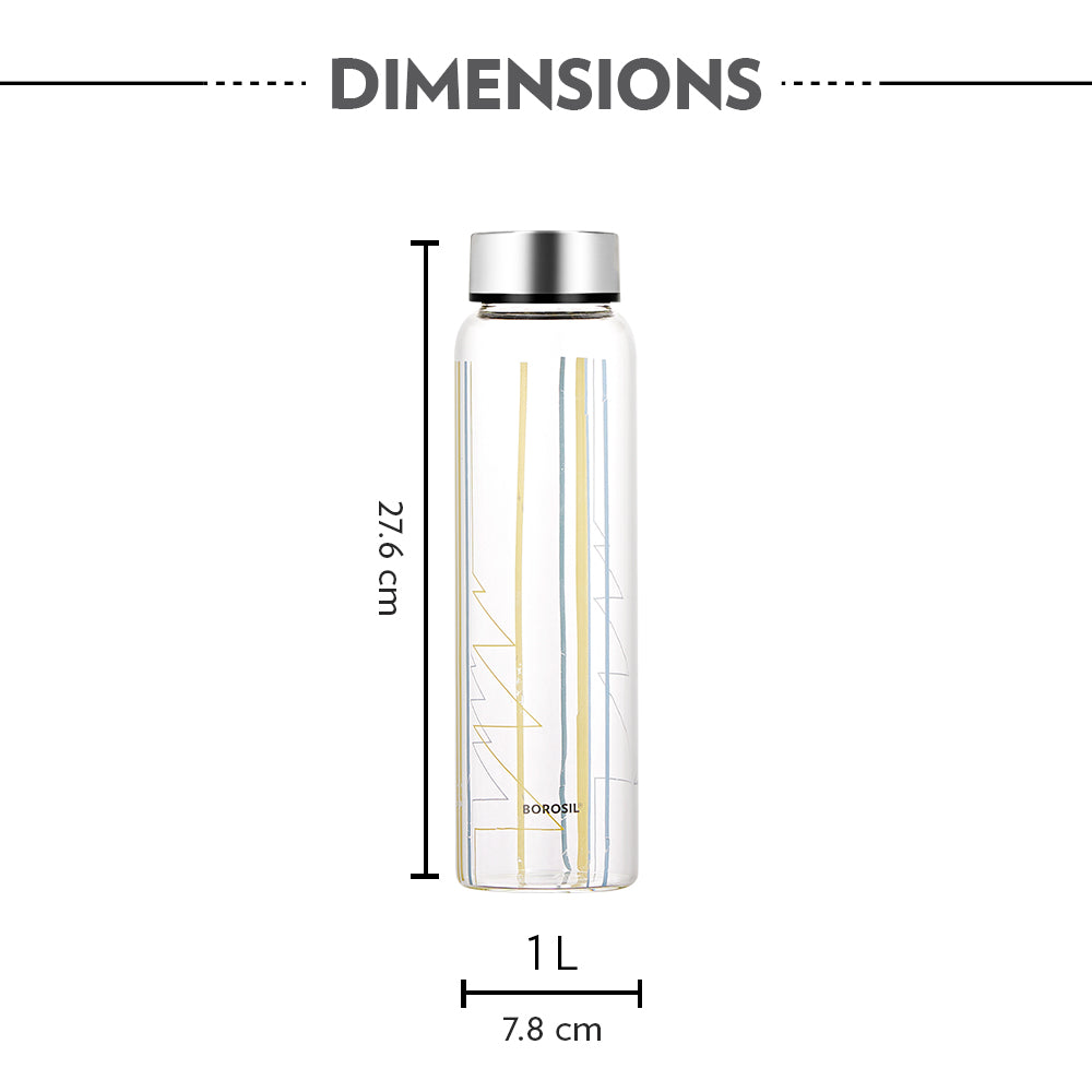 Borosil Crysto Wide Sintra Glass Bottle with Silver Lid , 1 L