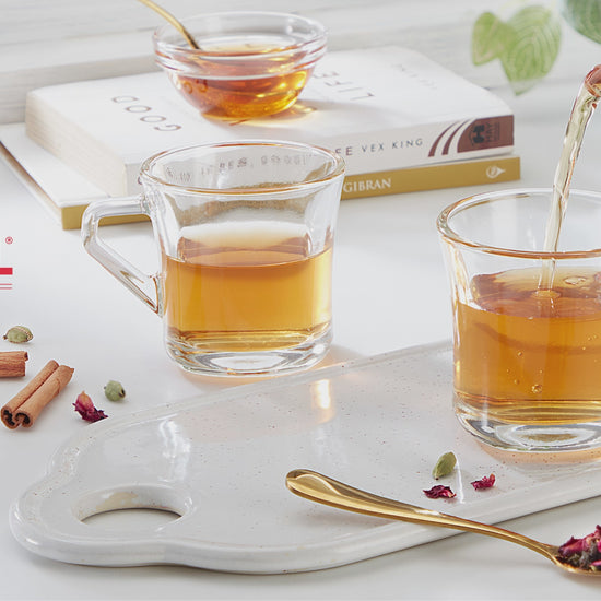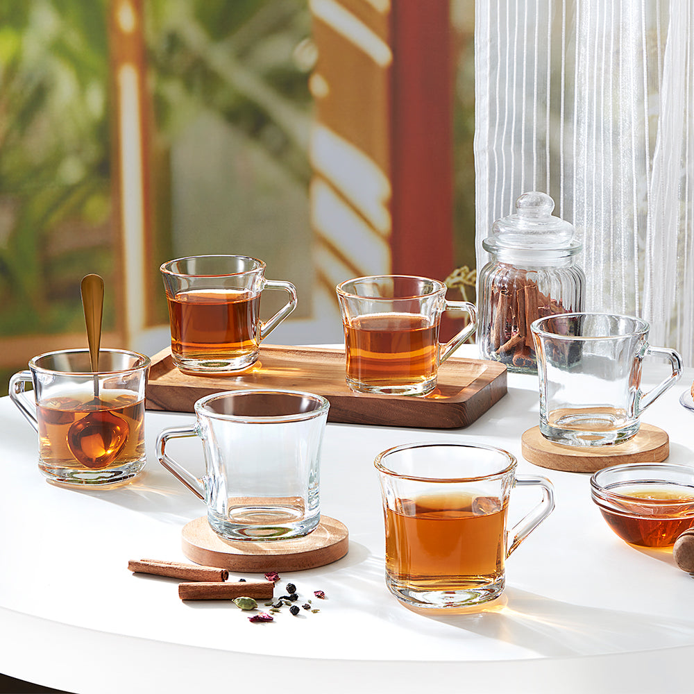Start your mornings in serenity with our Cyder tea cup set. Crafted from tempered borosilicate glass, these cups offer a calming start to your day, whether you're enjoying a comforting cup of tea or a revitalizing coffee. With their dishwasher-safe design, clean-up is a breeze, leaving you more time to relax and savour the tranquillity of the morning. Imagine the soft glow of dawn filtering through your window as you cradle one of these elegant cups, your worries melting away with each sip. Make every morning a serene moment with our Serene cup set.