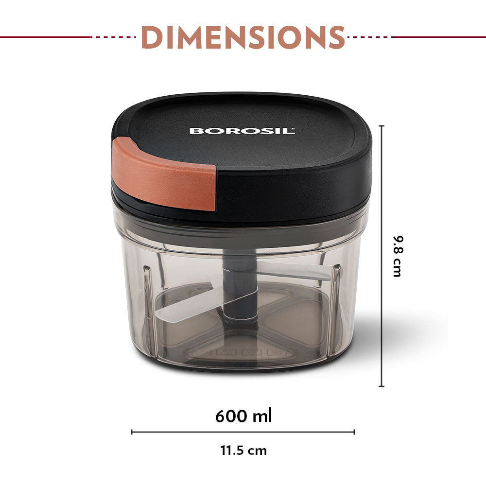 Borosil EazyPull Chopper, 600ml - 3 Blades