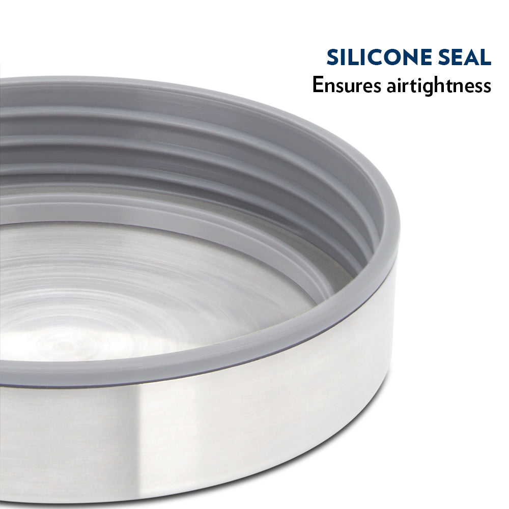 The Endura Jars come with a Stainless steel screwtop lid to ensure perfect airtightness. The elegant lids lend the jars an elegant, timeless appeal, while the 100% borosilicate bottom ensures utmost functionality.