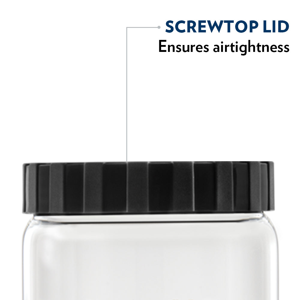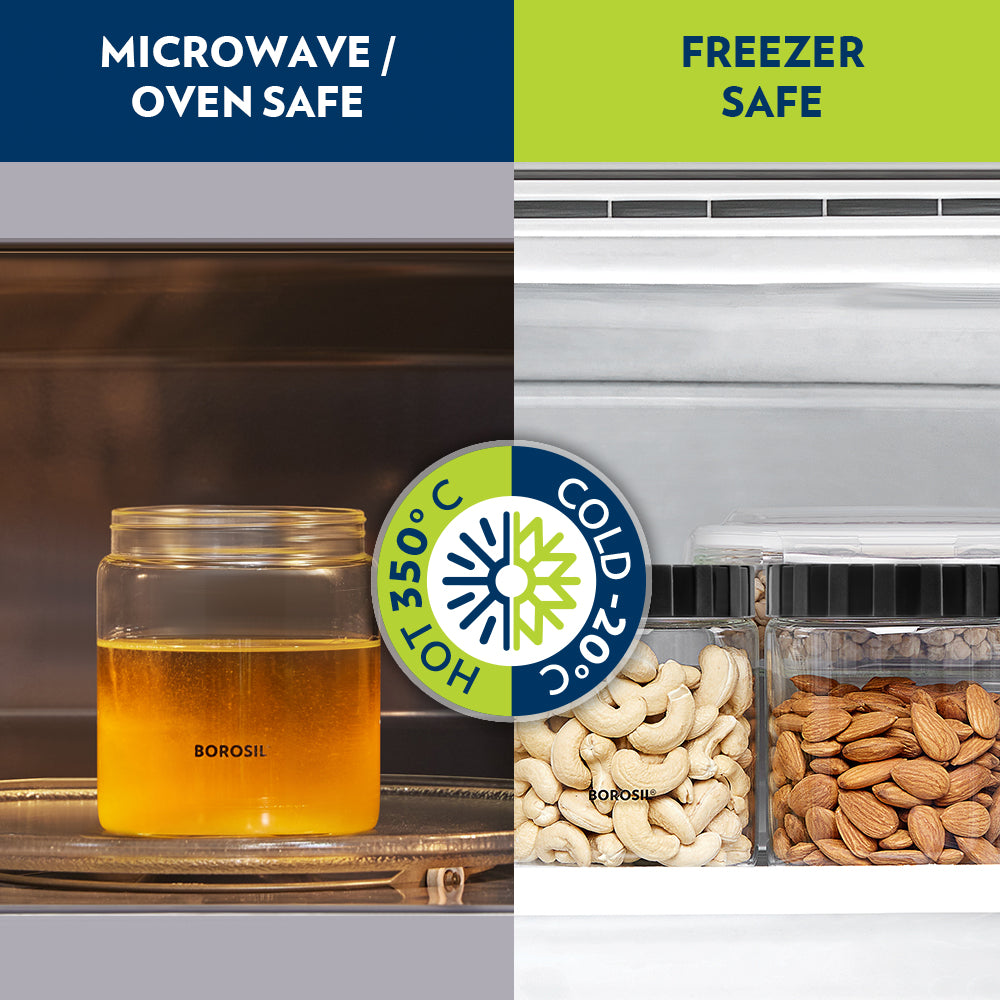 The Endura Jars come with a screwtop PP lid to ensure perfect airtightness. Oven proof, freezer proof, and extreme temperature resistant these jars can be put straight in the microwave (without lid) to freshen up snacks, used to freeze purees and then thawed in the microwave before use, and of course, to store regular food items like pulses and grains. No matter what you use the Endura Storage Jars for, your food will stay 100% pure and healthy.