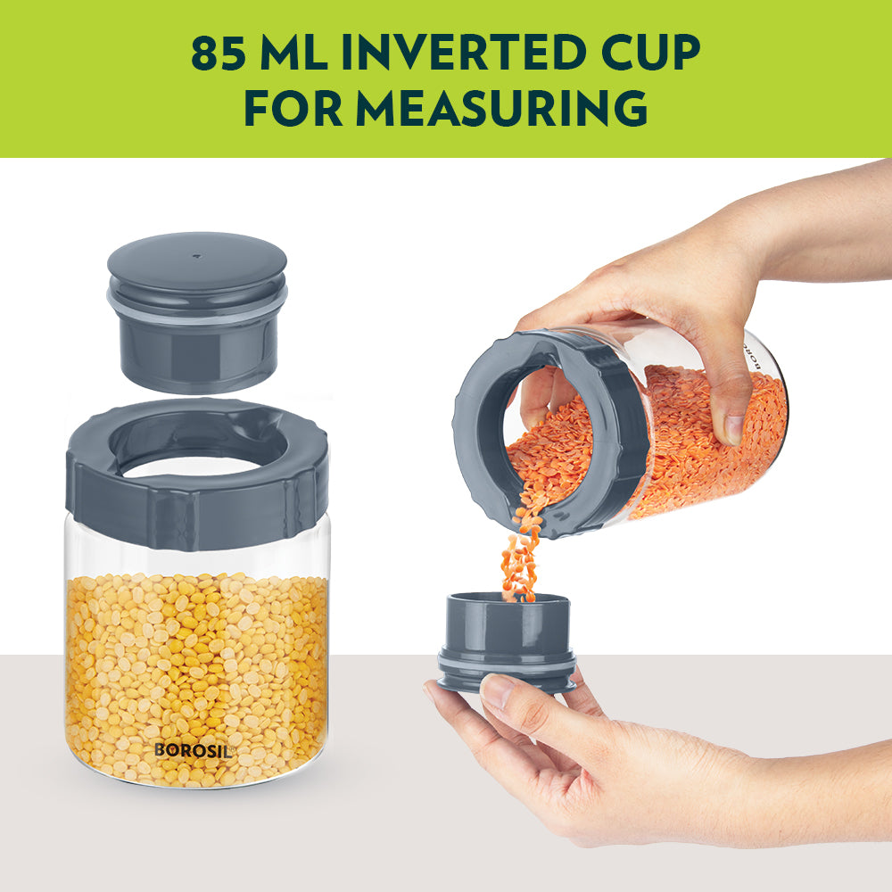 Borosil Endura Easyscoop Airtight Glass Jar with PP Lid Gray
