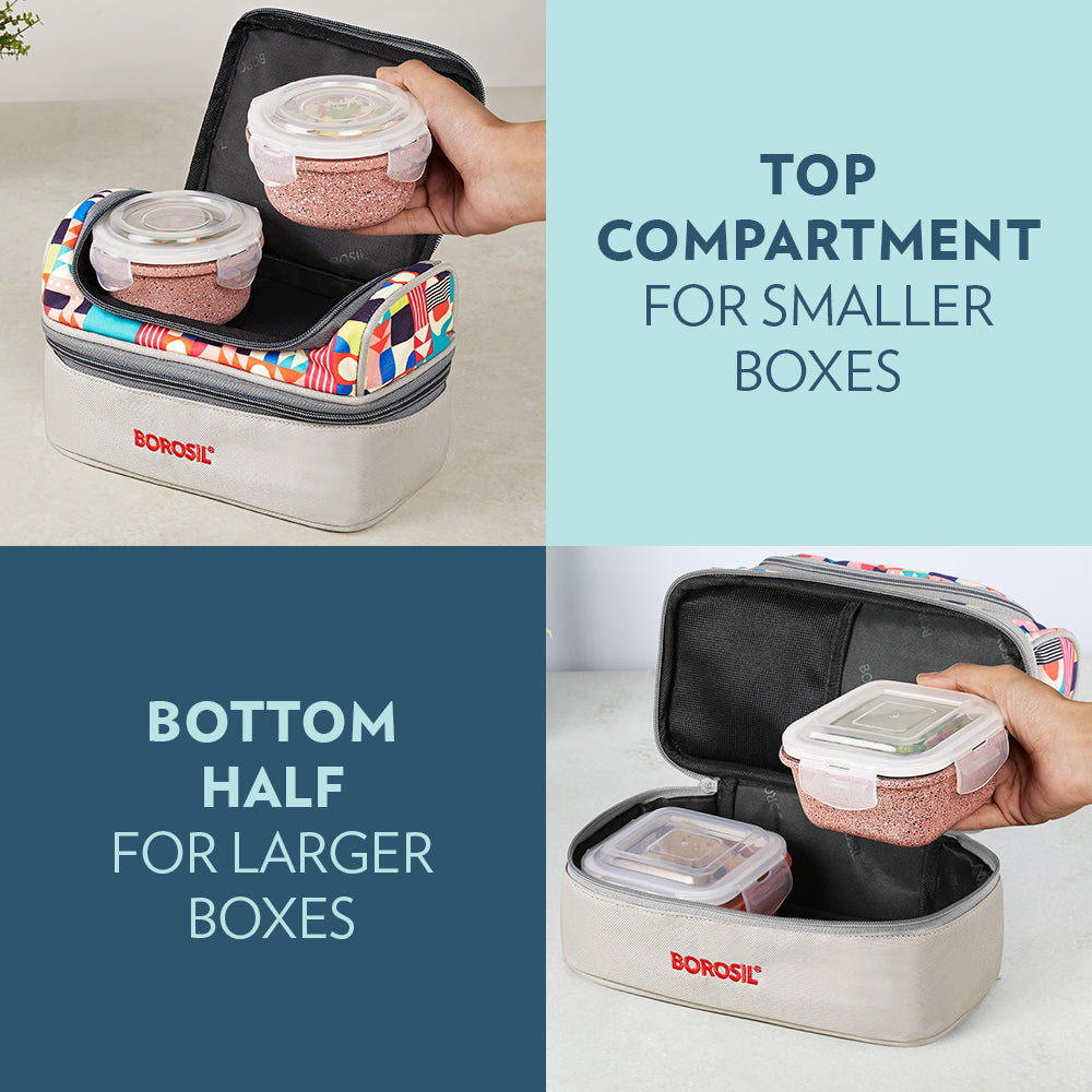 Fresh, tasty and healthy – our Borosil Lunch Boxes ensure that your food looks, tastes and smells just as it did while it was lovingly prepared. Made of the finest borosilicate glass, the leak proof boxes are 100% microwavable (up to 350°C), 100% oven safe, 100% stain proof and leach no chemicals into your food. Unlike the other glass lunchboxes in the market, Borosil's Lunchbox range is made of high grade borosilicate glass, which is also oven safe. The high quality fabric carry bags are machine washable. There is no better way to bring home to the office. No plastic - isliye fantastic!