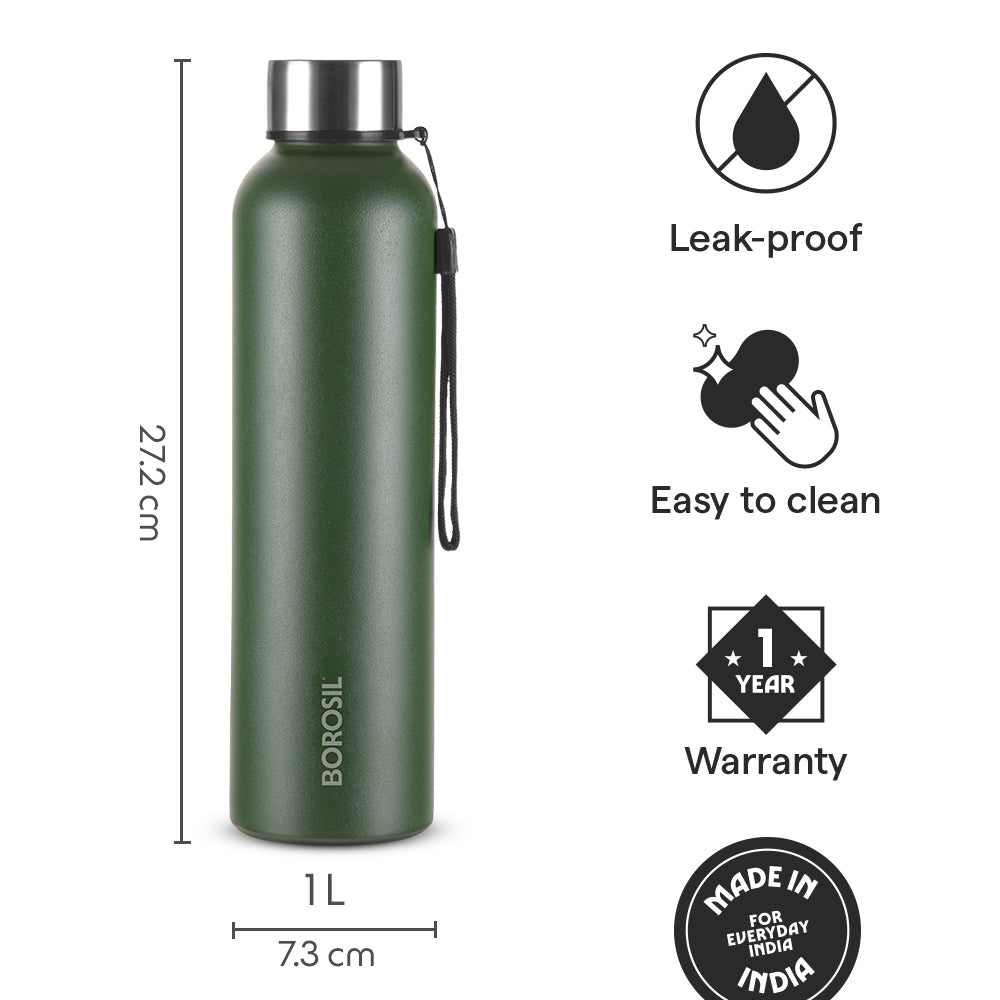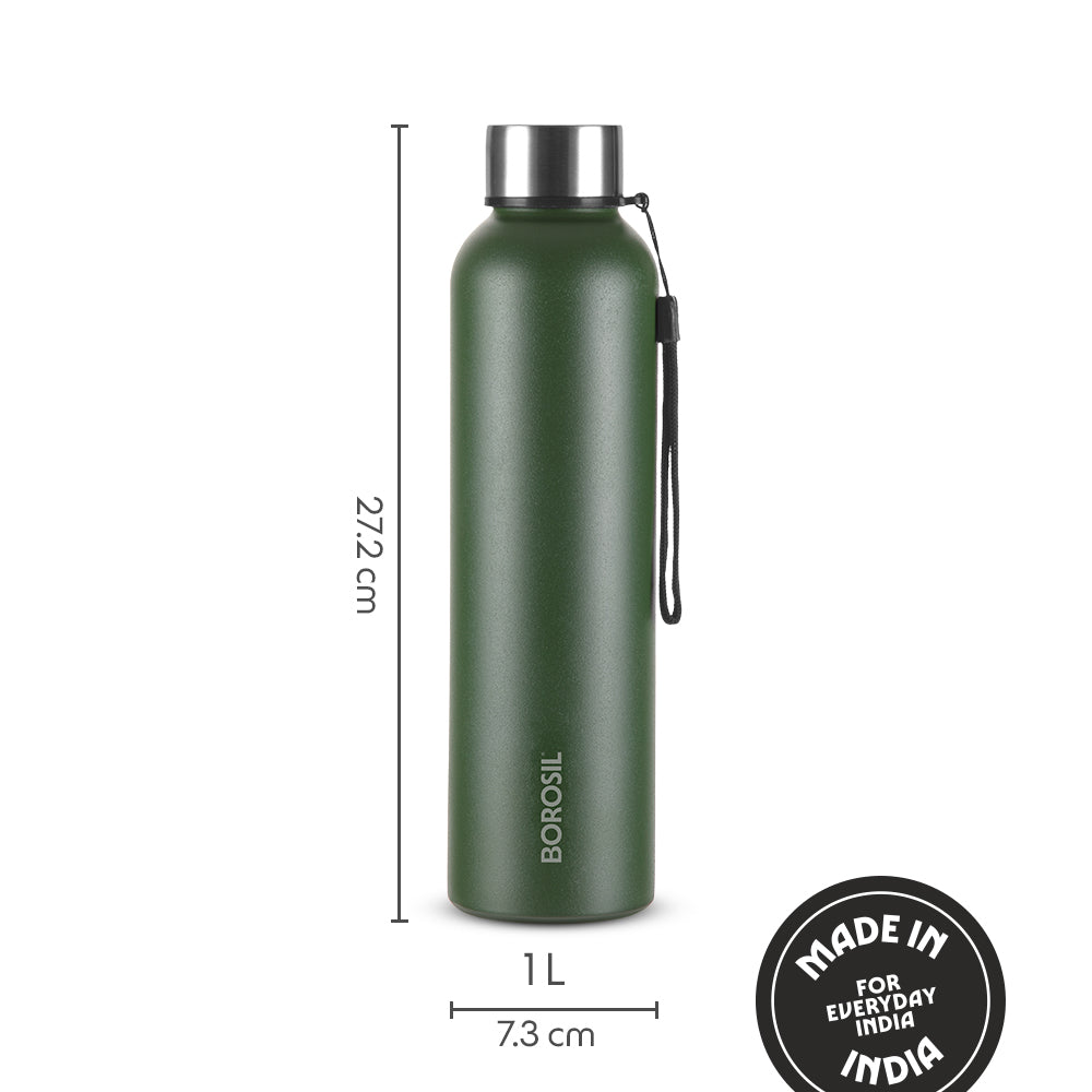 Borosil Laguna SS Bottle Green, 1L