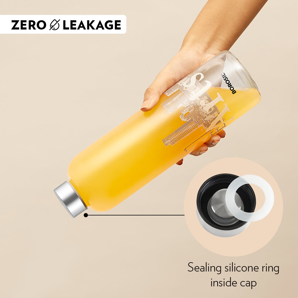 Borosil Neo Narrow Mouth Roma Glass Bottle with Silver Lid , 550 Ml