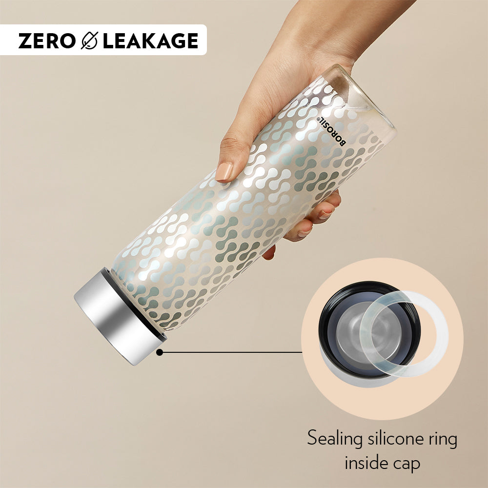 Borosil Neo Wide Mouth Vista Glass Bottle with Silver Lid