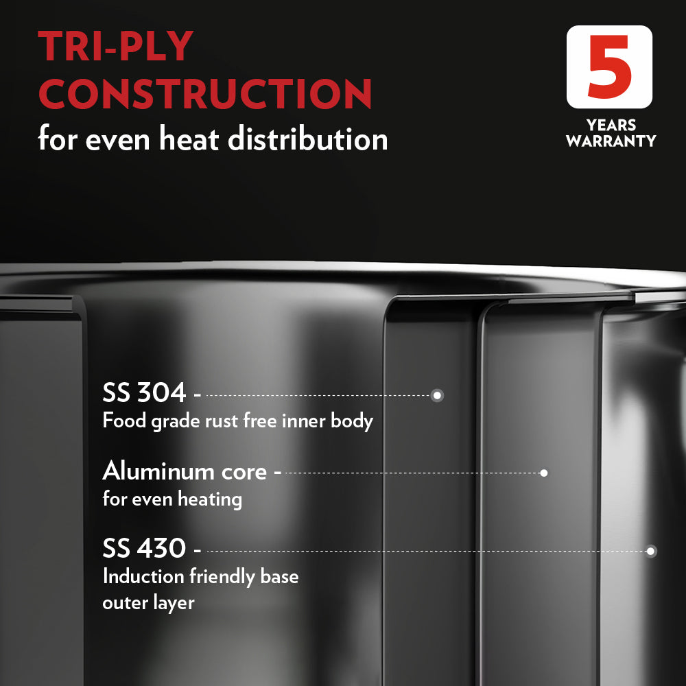 Food Grade SS304 tri-ply for even heating and uniform heat distribution