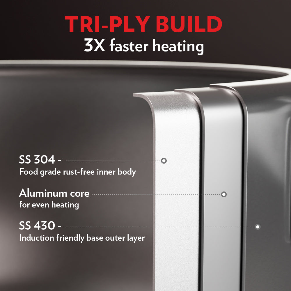 - Induction friendly Stainless Steel bottom