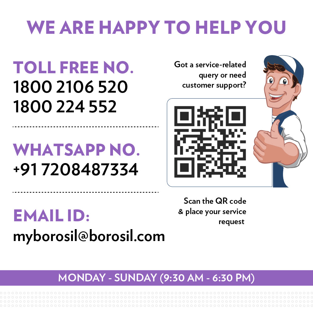 - On Site Service: If you are facing any problem with your Borosil Electric Kettle, just raise a service request and an engineer will visit your home to inspect and repair your appliance
