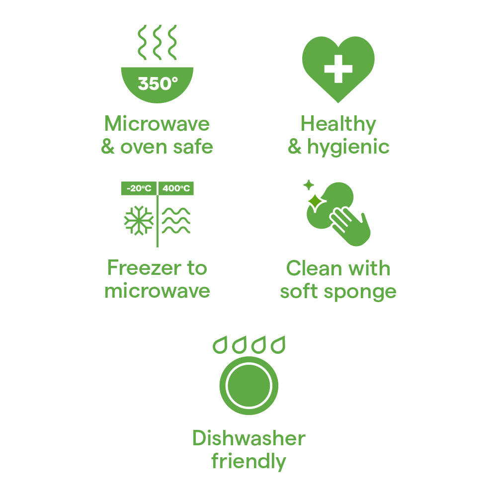 - Can be safely used in the microwave, oven, fridge, freezer and dishwasher