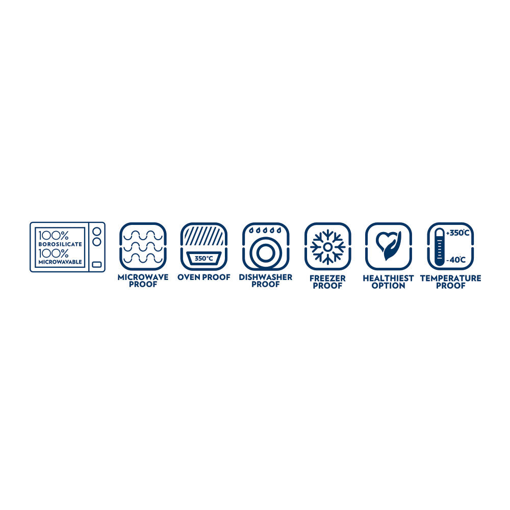 Our Mixing Bowls are truly multipurpose - they are ideal for preparing and serving biryanis, dal, subzis, raita, pasta, noodles and salads - whether for daily use or parties. Because Borosil's high quality borosilicate glass is able to withstand temperatures of up to 350 °C, you can even use these bowls to boil rice and potatoes. The stylish blue lid allows you to store leftovers with ease for quick reheat and use the next day.