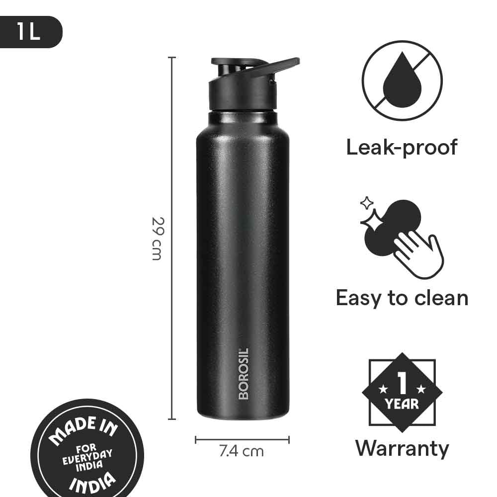 Borosil SipFresh SS Single Wall Bottle, Galaxy, 1 L