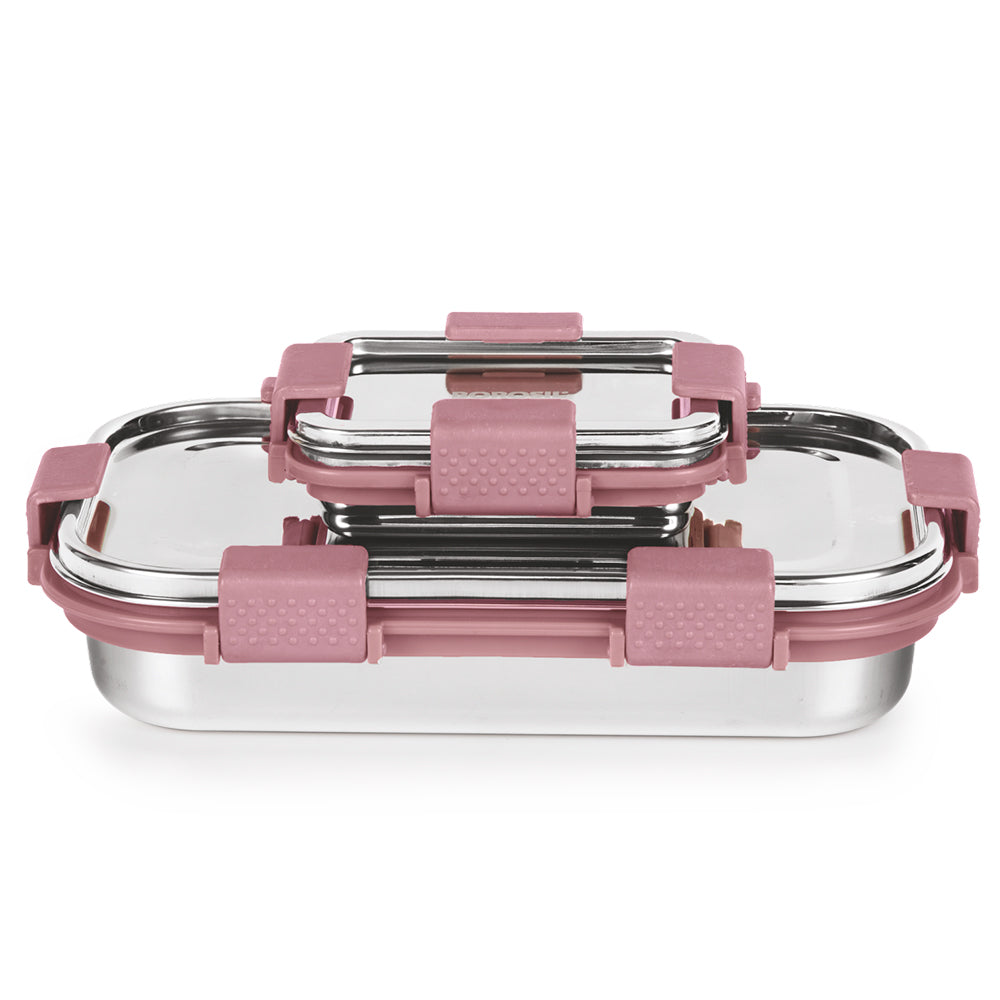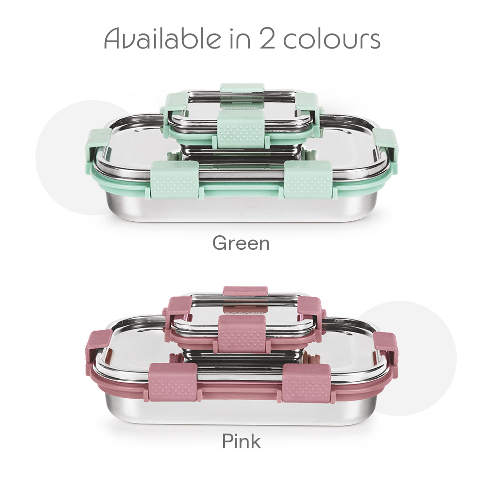 Carry a part of home with you wherever you go with this stylish lunch box in a vibrant green shade. Pack a wholesome meal like aloo parathas with curd and a side of pickles in this two-container set, ensuring freshness and flavour throughout your day.