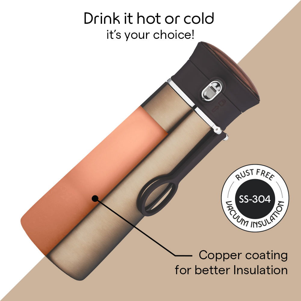 For maximum effectiveness, filling the bottle with hot water/ ice a few minutes before will help keep your drink hot/ cold for longer