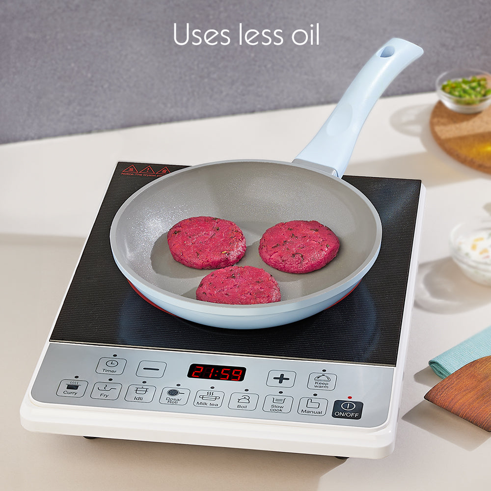 The 20 cm Vajra Ceramic Fry Pan is your go-to option when you want to whip up quick, delicious meals for one or two people. Ideal for making scrambled eggs, paratha, or sautéing vegetables, this fry pan ensures your food is cooked evenly while maintaining its taste and texture.