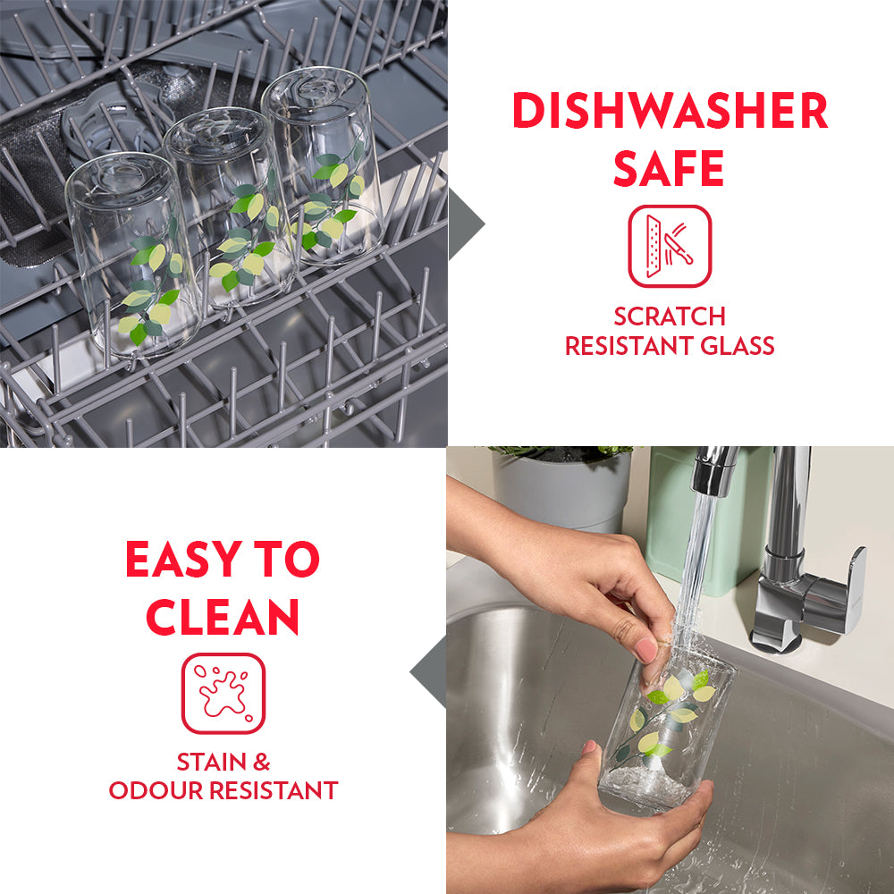 Borosil Vision Green Leaves Glass, Set of 6, 295ml