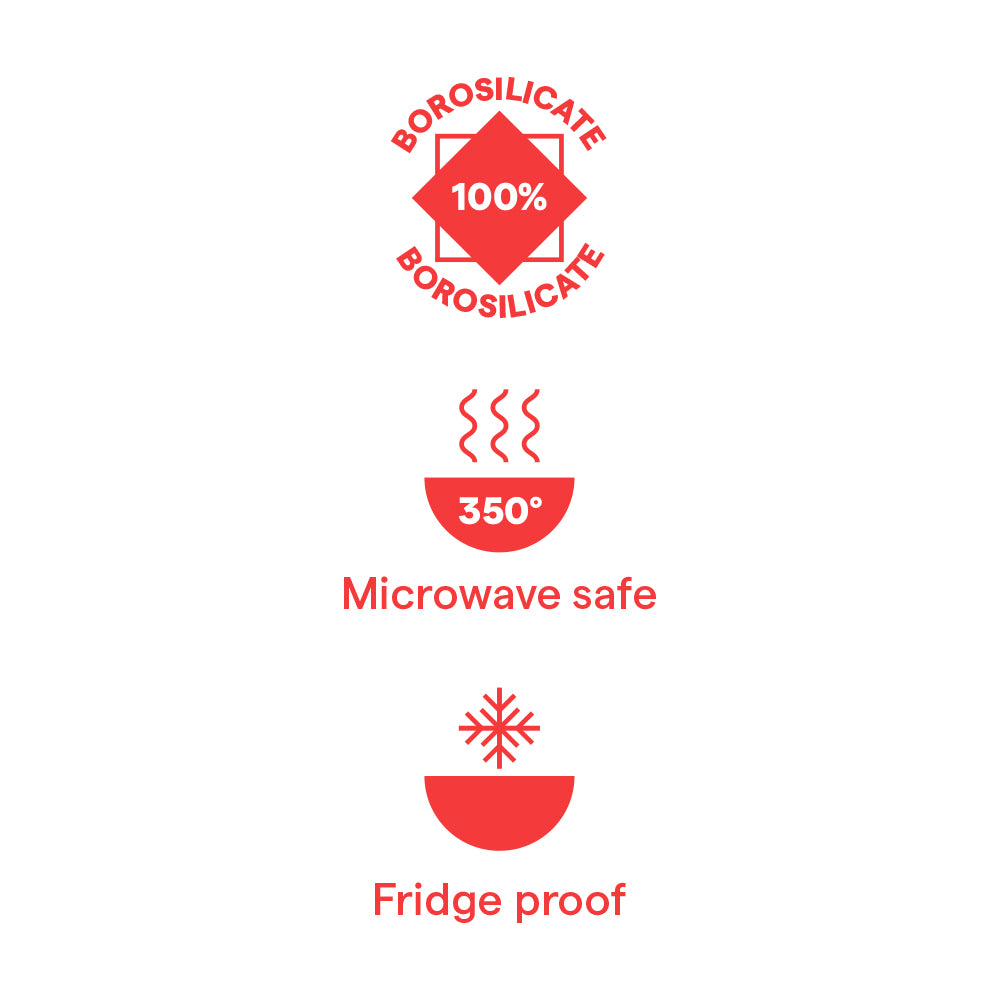- Are made of 100% borosilicate glass and can be safely used freezer, microwave, oven and dishwasher