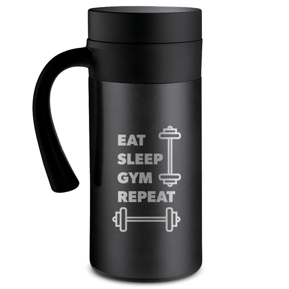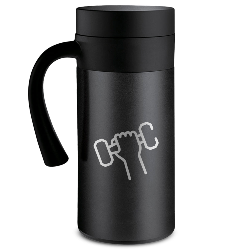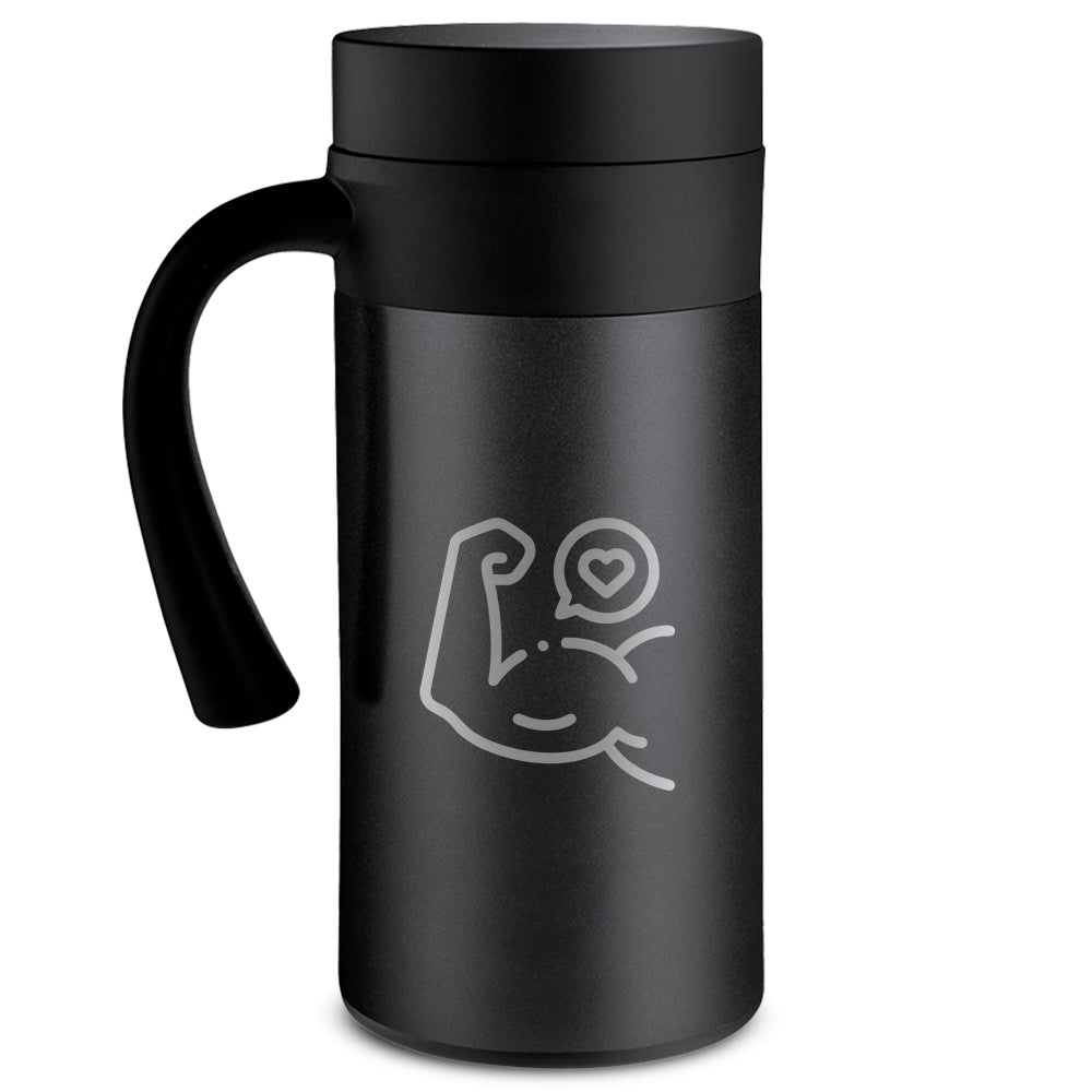 Introducing the sleek and stylish black stainless steel coffee mug, CafeTime. Perfect for coffee, tea, or any other hot beverage, this mug will keep your drink at the perfect temperature for 10 hours. Its black stainless steel construction provides a sleek, modern look that will complement any kitchen counter or office desk. With a double-walled insulation, it will keep your drink hot or cold for hours, while the lid ensures that it will not spill while on the go. Lightweight, durable, and easy to clean, this mug is the perfect accessory for coffee lovers everywhere.Take your coffee or tea to go with the convenience of this black stainless steel coffee mug.