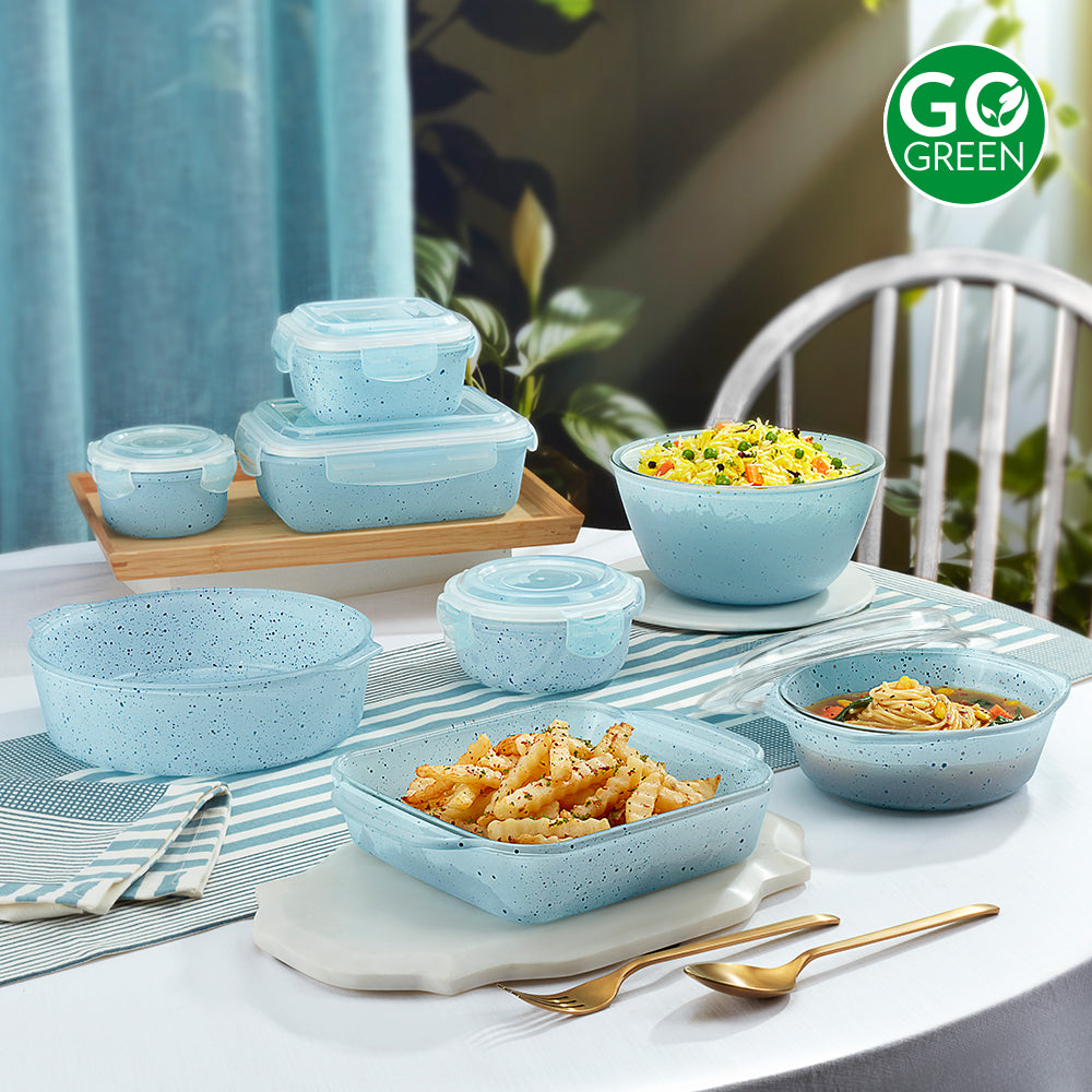 - 100% borosilicate color glass containers – no odours, no stains