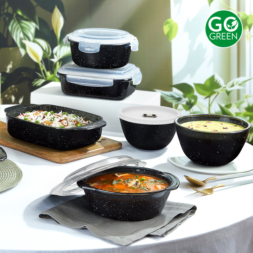 - Microwave, oven, freezer & dishwasher safe