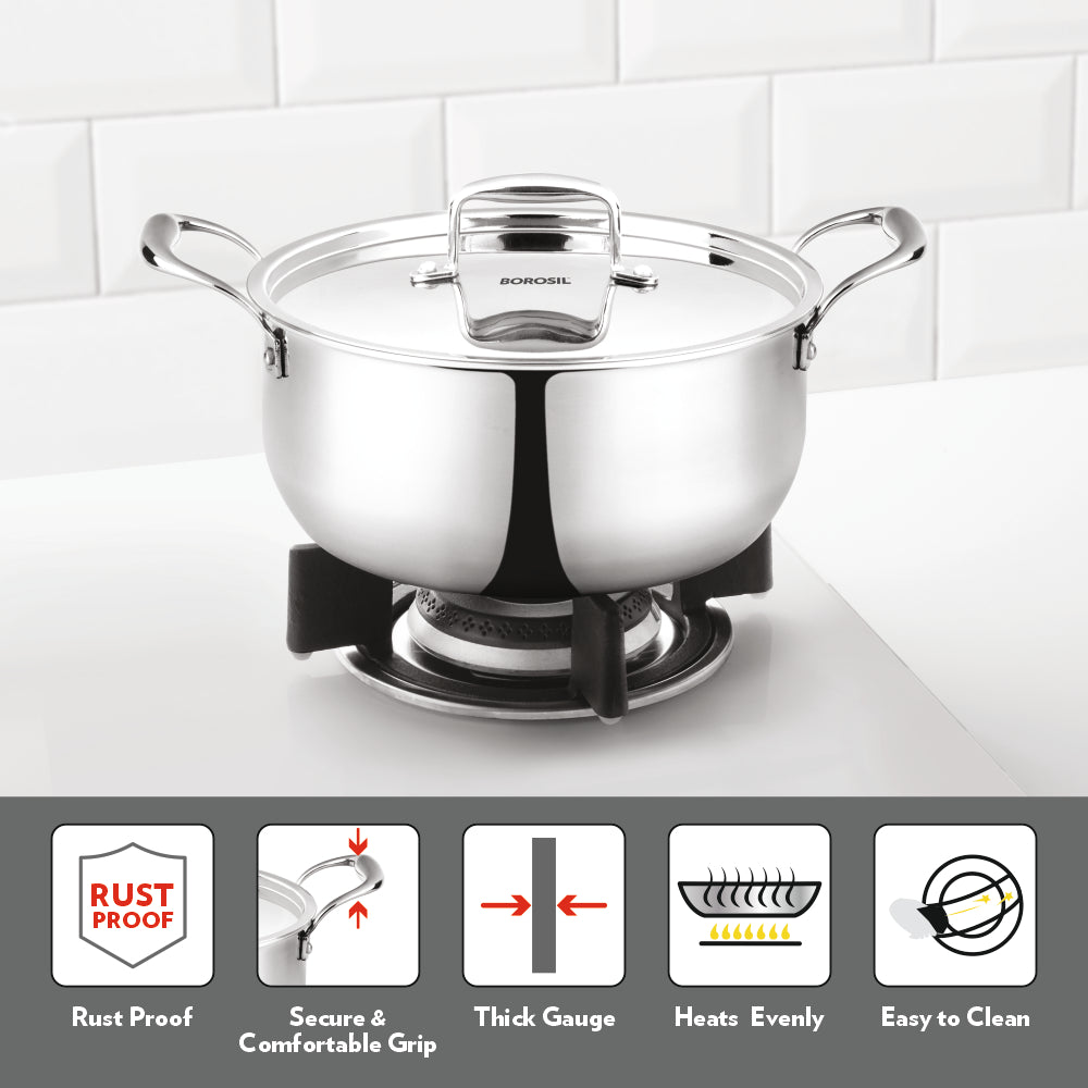 - The Borosil Stainless Steel Tri-Ply Cookware range comes with a 5 warranty on the product