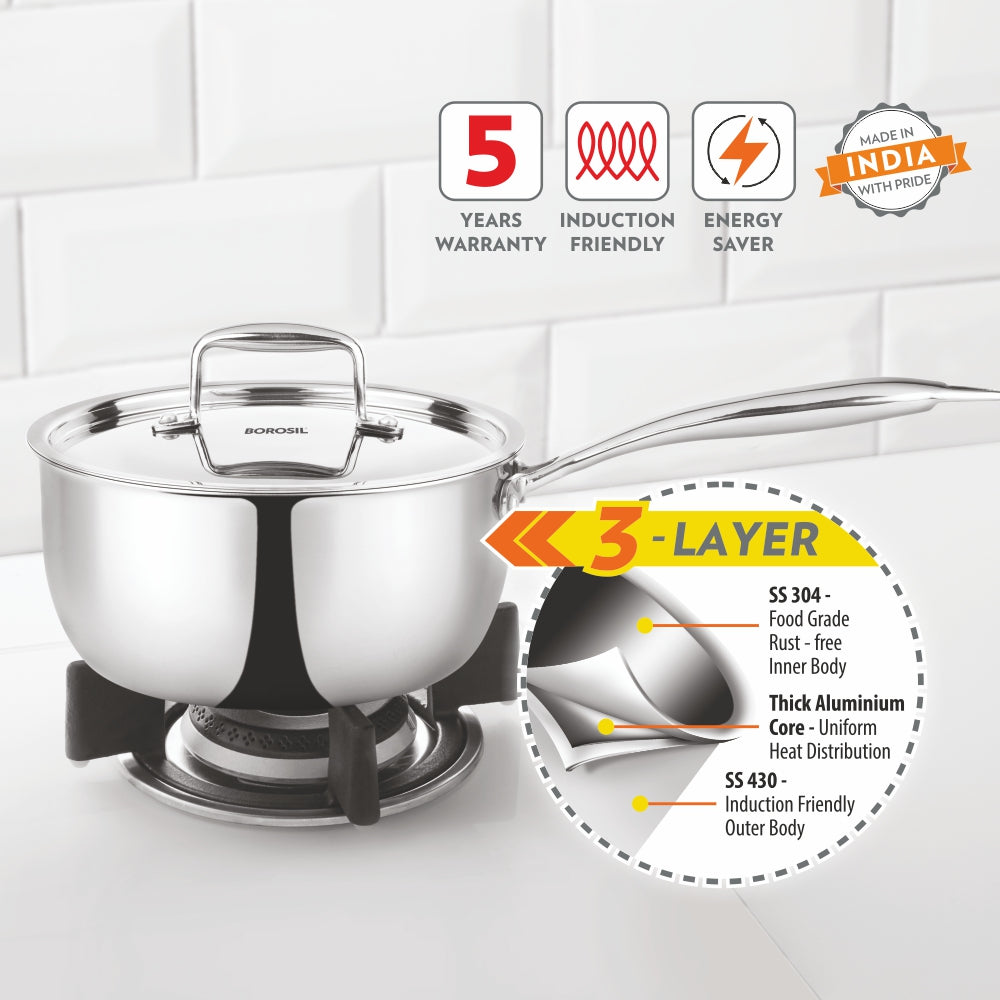 Borosil Cookfresh Triply Saucepan (Steel Handle), 3.1L