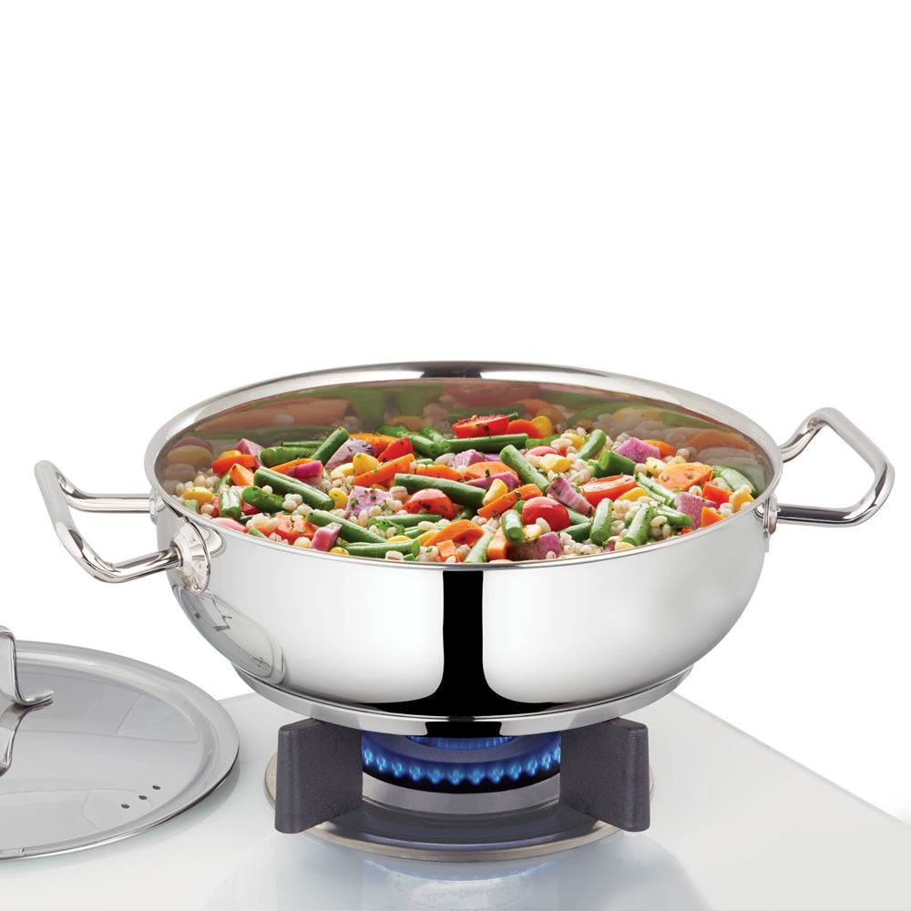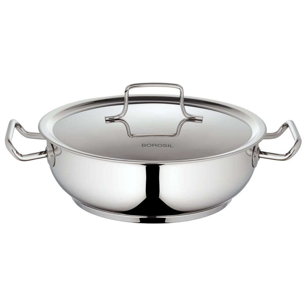 Borosil Cookfresh SS Flat Kadhai + Lid, 2.8L