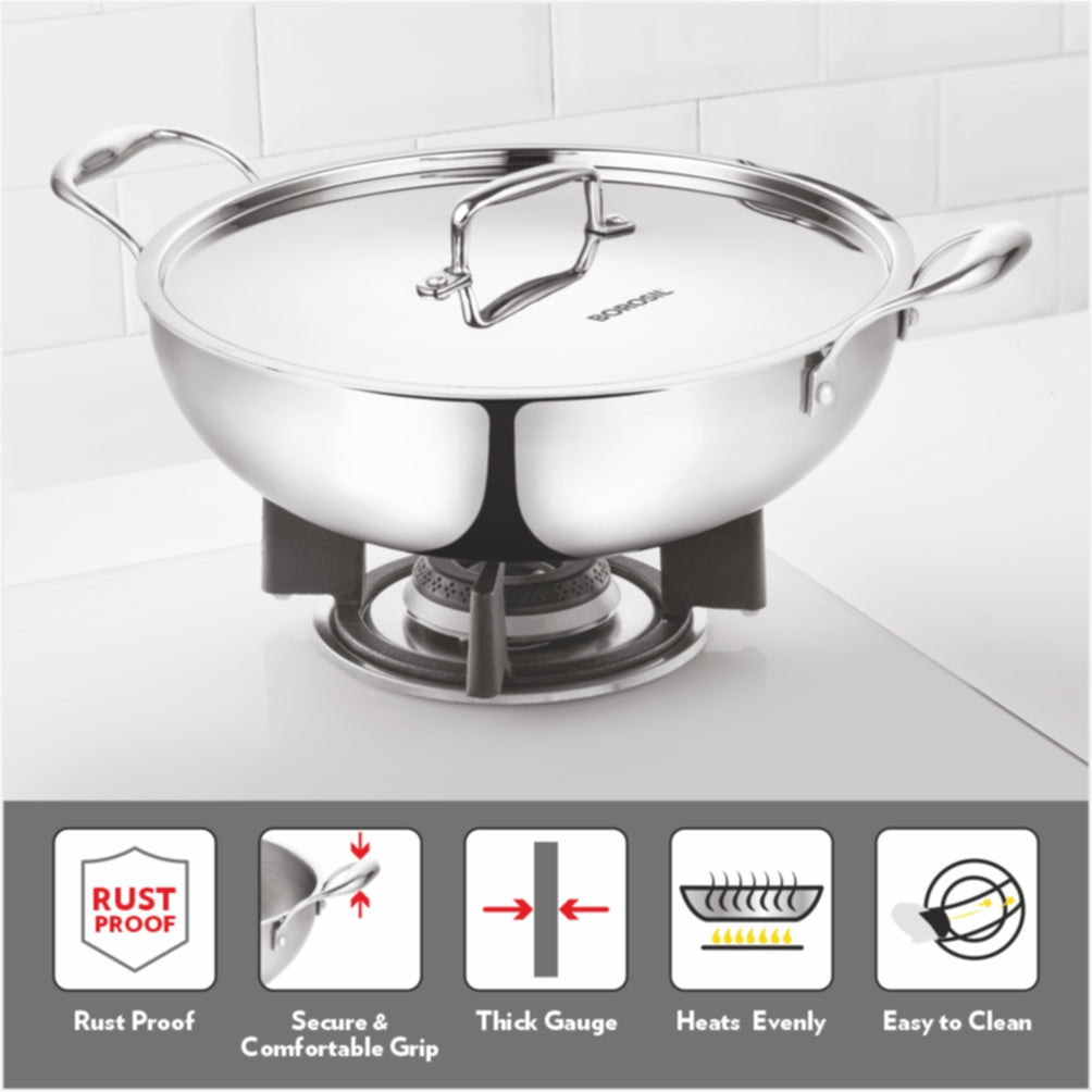 Borosil Cookfresh Triply Kadhai (SS Handle + Lid), 4.6L