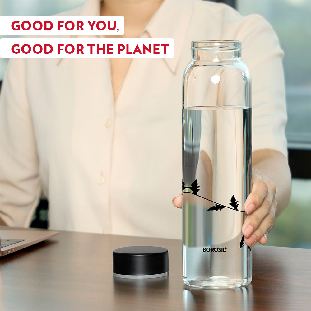 Made of 100% borosilicate glass, the Crysto Glass bottle keeps your water perfectly pure and 100% safe. The slim, cylindrical shape makes it easy to grip and ensures that it fits easily into the side of your refrigerator. Borosilicate glass is also fridge safe, in case you need to quickly chill your drink. The narrow mouth makes it perfect for drinking directly from the bottle, and the crystal clear, scratch proof glass ensures that your bottle looks as good as new, always.