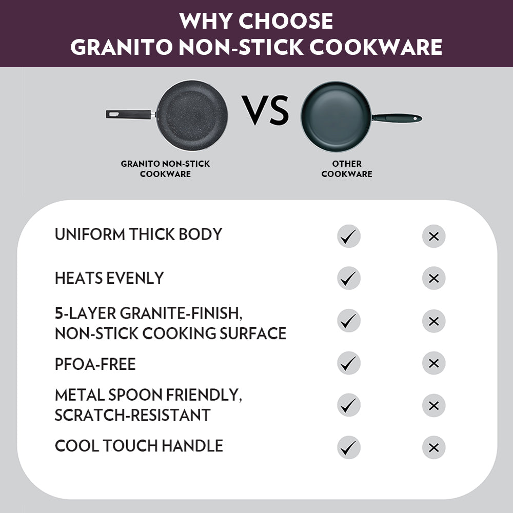 For retained qualityEven after prolonged usage, Granito cookware is scratch-resistant & maintains a smooth cooking surface.