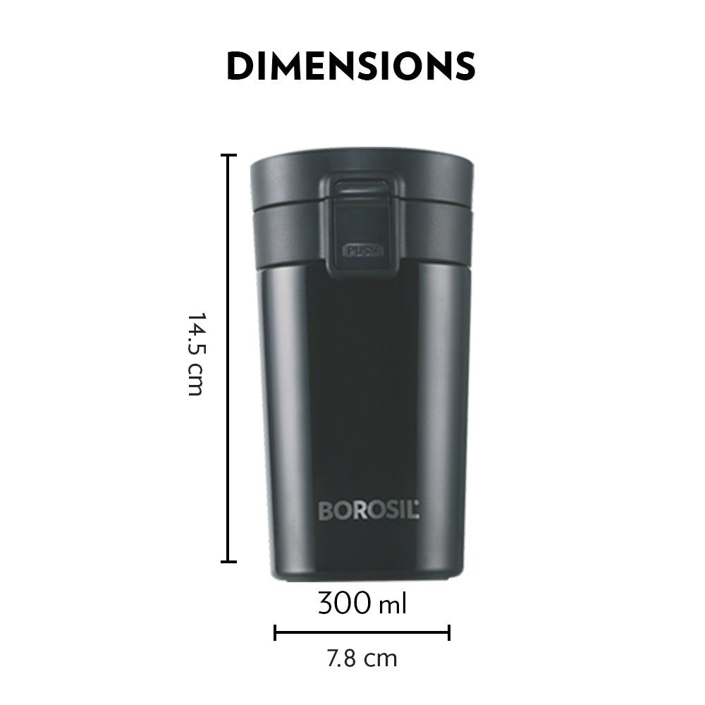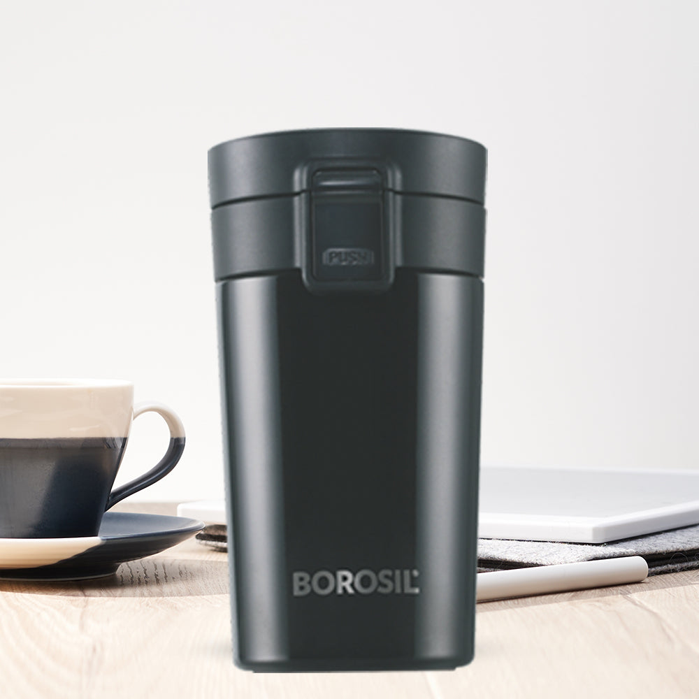 Borosil Coffeemate Insulated Mug-Personalise, Black, 300ml