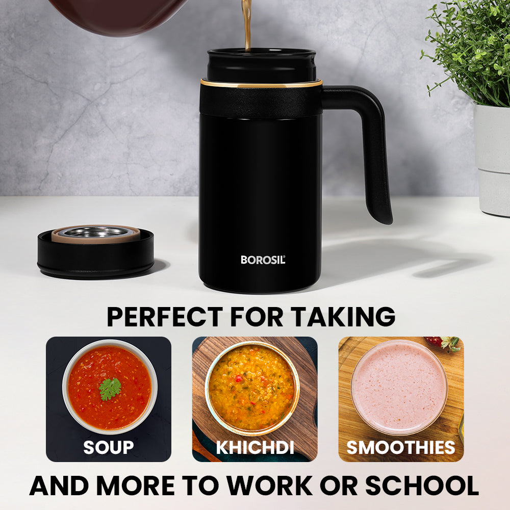 Introducing the Klassic 540 ml Super Insulated Mug, your ultimate companion for sipping your favorite beverages in style. With its sleek black color and superior insulation capabilities, this mug is designed to keep your drinks hot for up to 8 hours and refreshingly cold for up to 13 hours, making it the perfect choice for all your daily adventures. Embrace the joy of savouring your favorite drinks at the perfect temperature, sip after delightful sip. Choose Klassic, where every drink becomes a moment to cherish.