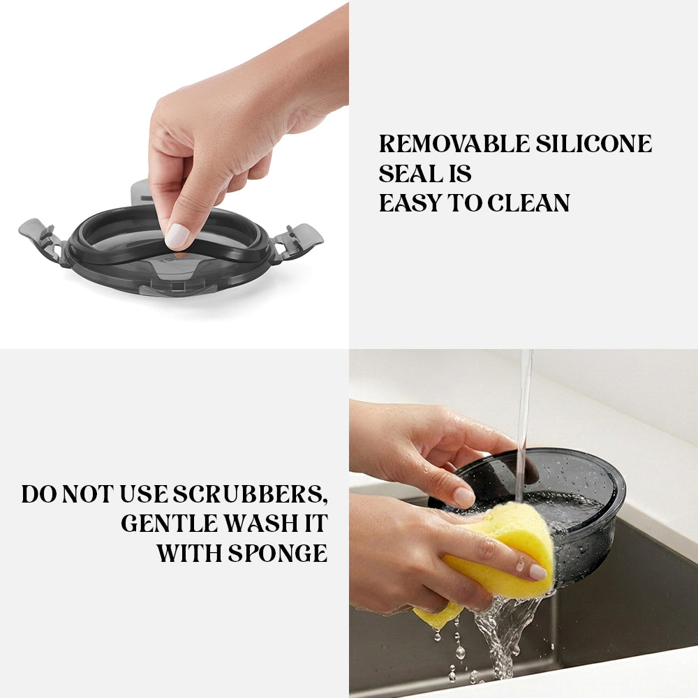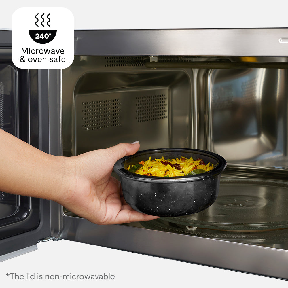 The Larah by Borosil Colormate Lunch Box is designed for everyday food storage with a simple, functional design. Made from 100% microwavable borosilicate glass, it is suitable for reheating food in the microwave and regular daily use.The container comes with an airtight, leak-proof lid that helps keep food securely stored while carrying. The borosilicate glass material does not easily retain stains or colors and is easy to clean and maintain. Available in Black, Blue, and Pink, it offers a practical and neat solution for office, school, or home use. Proudly Made in India.