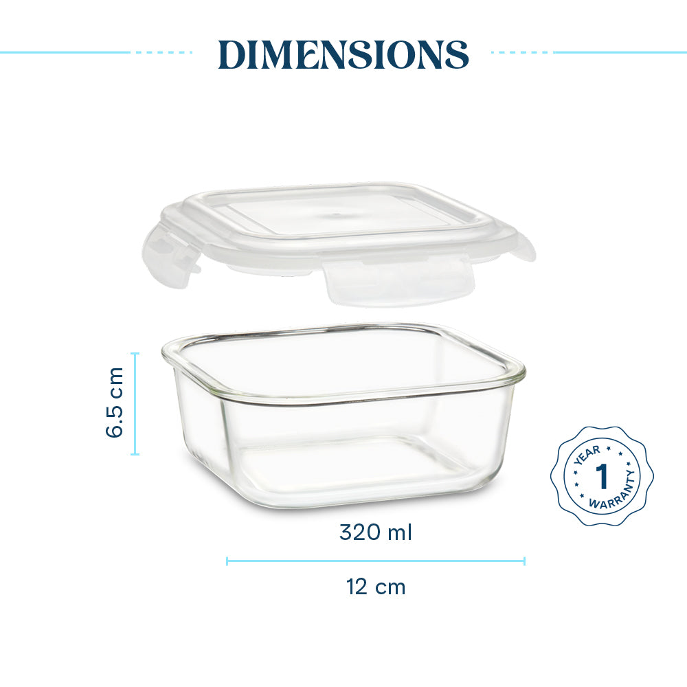 Larah Klip N Store Square Everyday Glass Container 320 ml