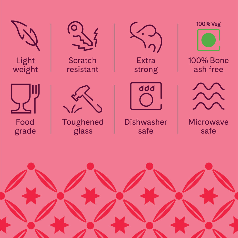 - 100% vegetarian as it is completely bone ash free, unlike bone china
