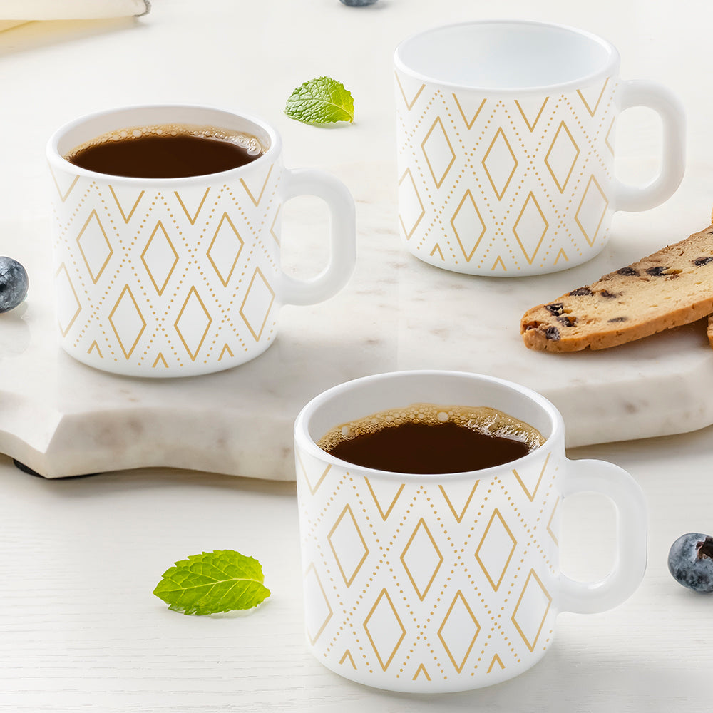 Larah mugs are great for serving tea, coffee or your favourite brew. They come in three sizes (100 ml, 180 ml, 240 ml, 320 ml) so whether you like only a little tea/coffee or a lot of it, we've got just the right size for you. They are made of toughened opal making them scratch and chip resistant. Oh, and did we mention they're microwave safe too?! Who says an ideal cuppa does'nt exist!