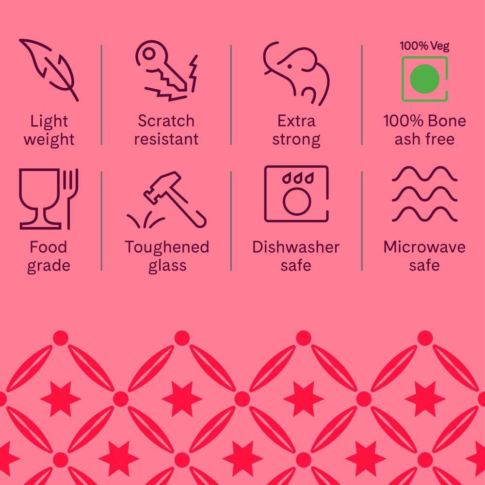 - 100% vegetarian as it is completely bone ash free, unlike bone china