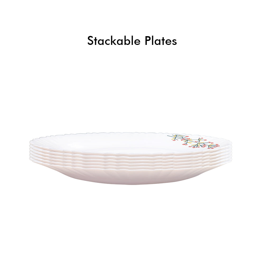 - Included Components: 6 N Full Plates (10 inch / 25.4 cm), 6 N Veg Bowls (210 ml), 6 N M. Veg Bowls (150 ml), 1 N Multipurpose Bowl (500 ml)