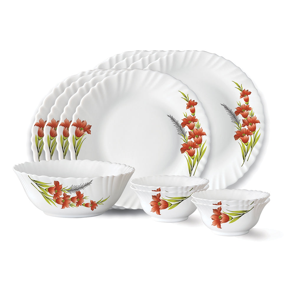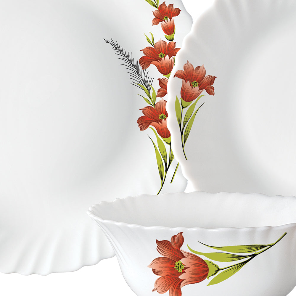 Larah by Borosil Red Iris Dinner Set, 6 pc
