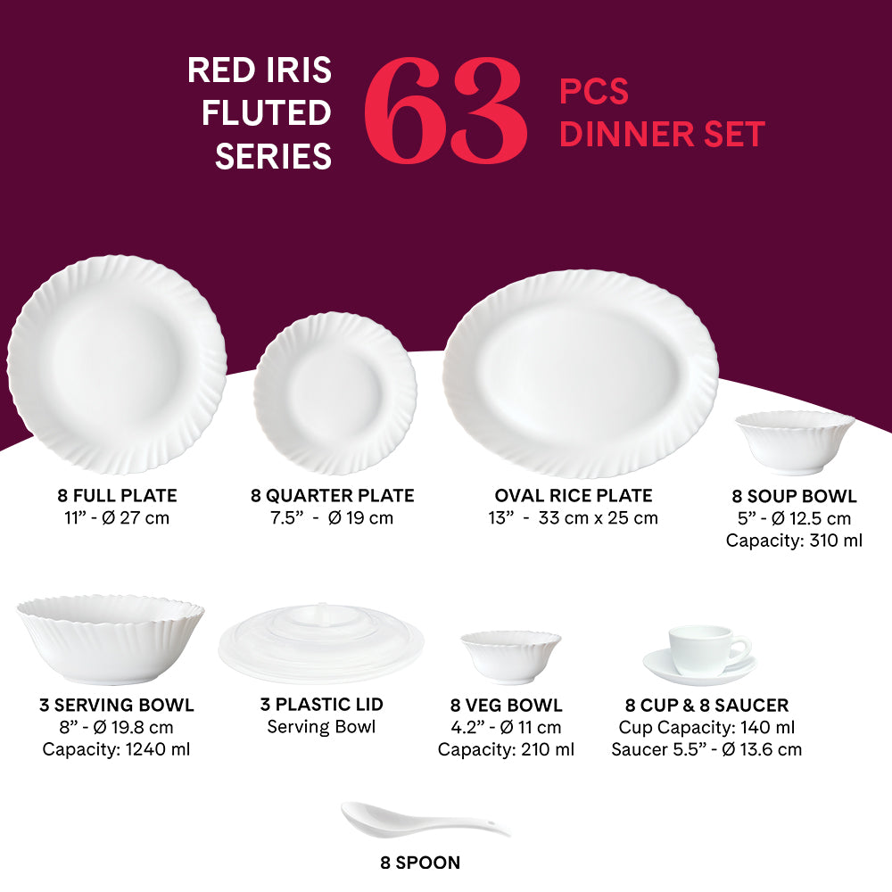 Red Iris Dinner Set 63 Pc Set: Serves 8
