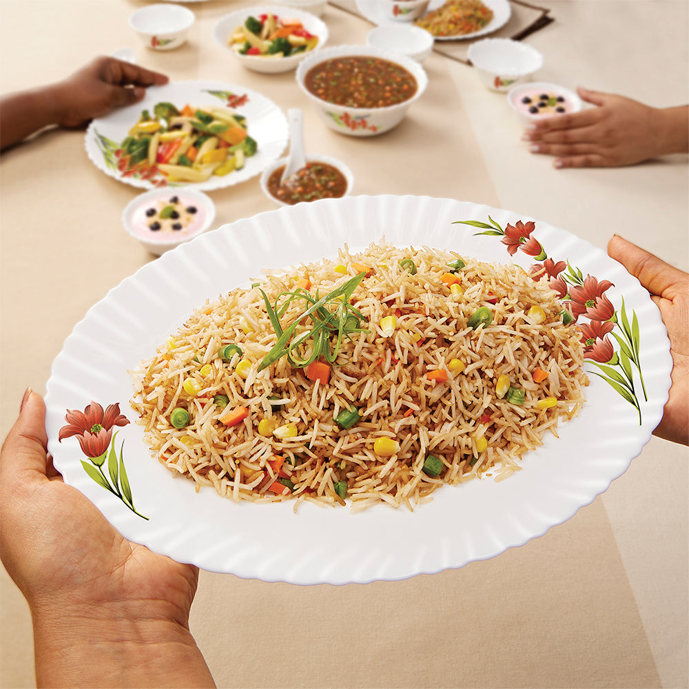 - Included Components: 6 Full Plates, 6 Quarter Plates, 1 Rice Plate, 2 Serving Bowls, 6 Mini Veg Bowls