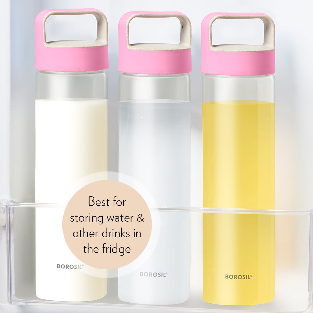 Made of 100% borosilicate glass, the Neo Glass bottle keeps your water perfectly pure and 100% safe. The cylindrical shape ensures that it fits easily into the side of your refrigerator, so you can use it to store your water and juices in your fridge. Borosilicate glass is also fridge safe, in case you need to quickly chill your drink. The crystal clear, scratch proof glass ensures that your bottle looks as good as new, always. With an easy to use carry handle, the Neo Glass Bottle is the perfect bottle for both your home and office.